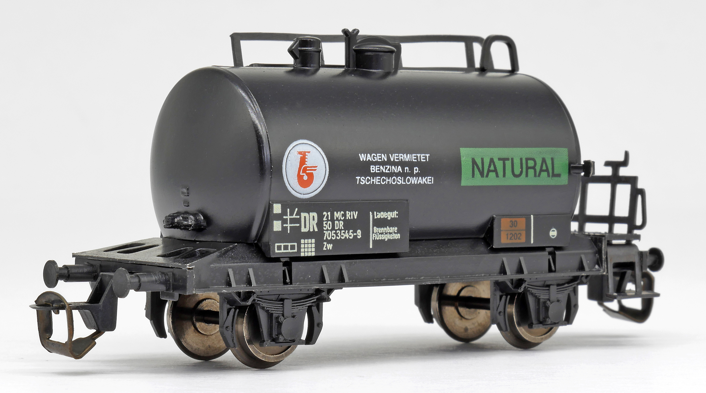 | kotlový vůz černý s potiskem „BENZINA-NATURAL“ |