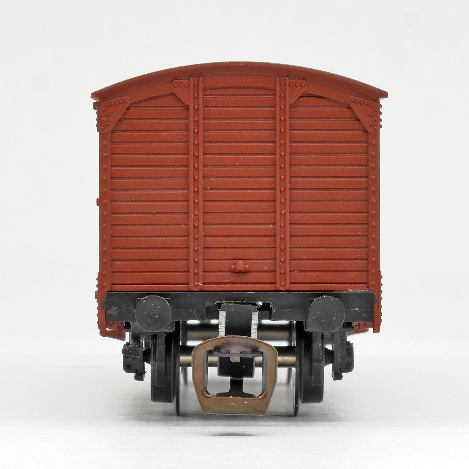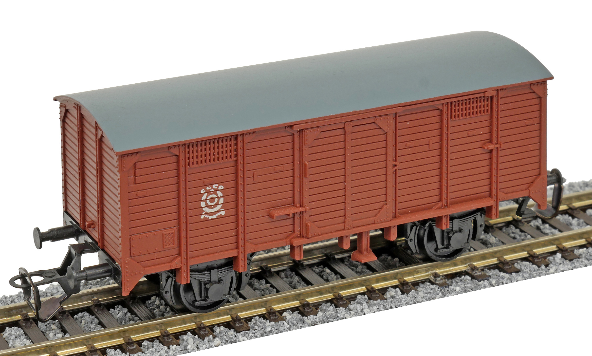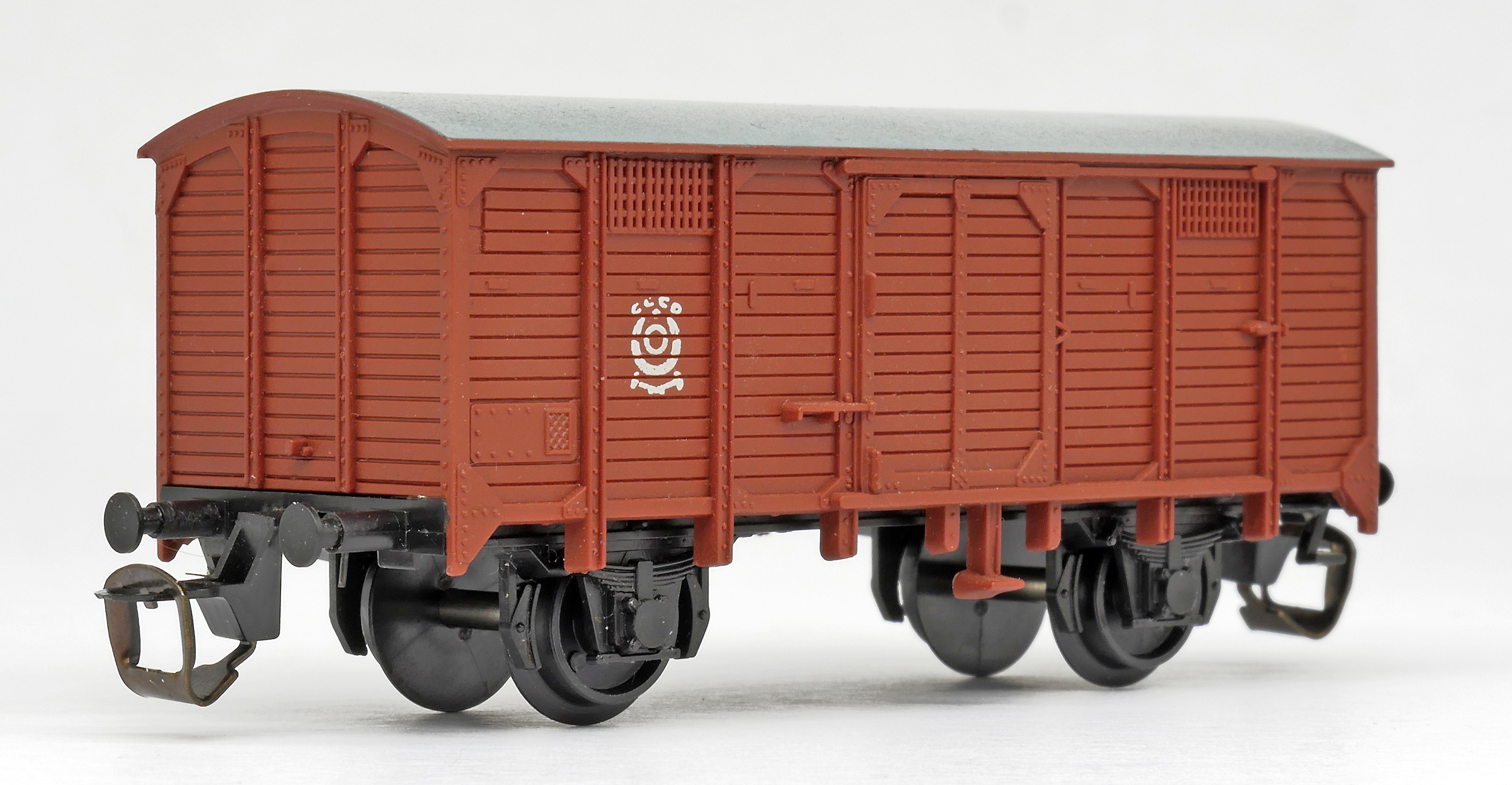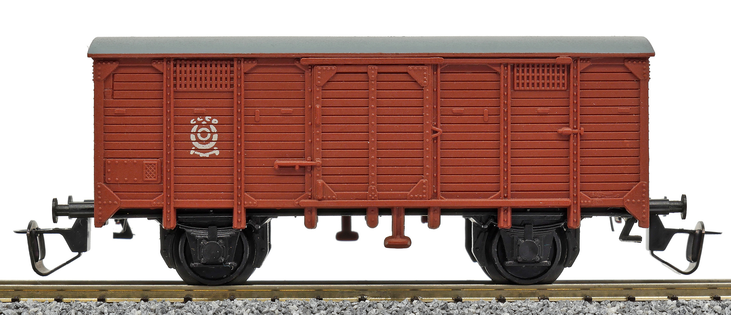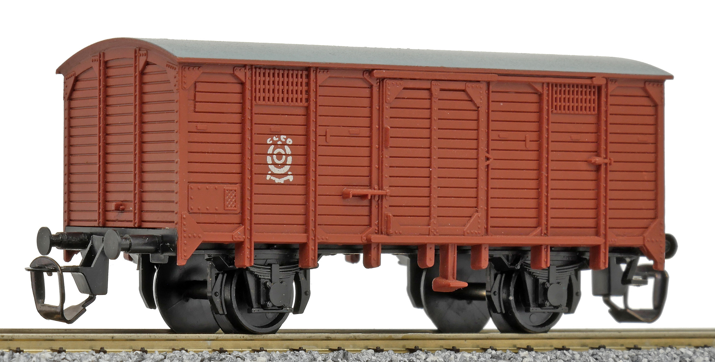 krytý nákladní červenohnědý s šedou střechou s logem „CCCP“