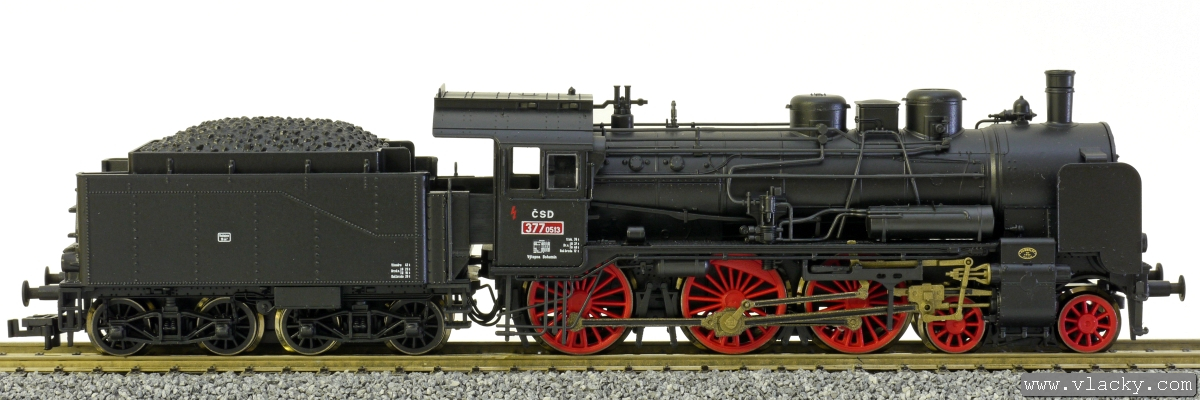 Kód   36061  [Lokomotivy] → [Parní] → [BR 38] → 36061: parní lokomotiva černá s kouřovými plechy, červený pojezd