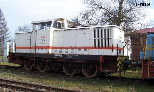 Kód   502603  [Lokomotivy] → [Motorové] → [V 60] → 502603: dieselová vlečková lokomotiva oranžová „VEB Teerverarbeitungswerk Rositz“