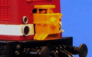 | dieselová lokomotiva oranžová, černý rám a pojezd, pomocný pohon |