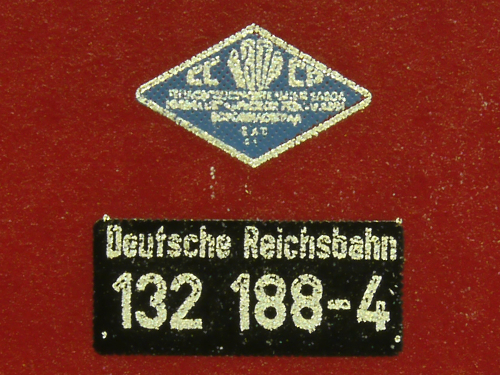 Kód   05774  [Lokomotivy] → [Motorové] → [BR 132] → 05774: dieselová lokomotiva v oritentální červené, bílý proužek, černá střecha, rám a pojezd