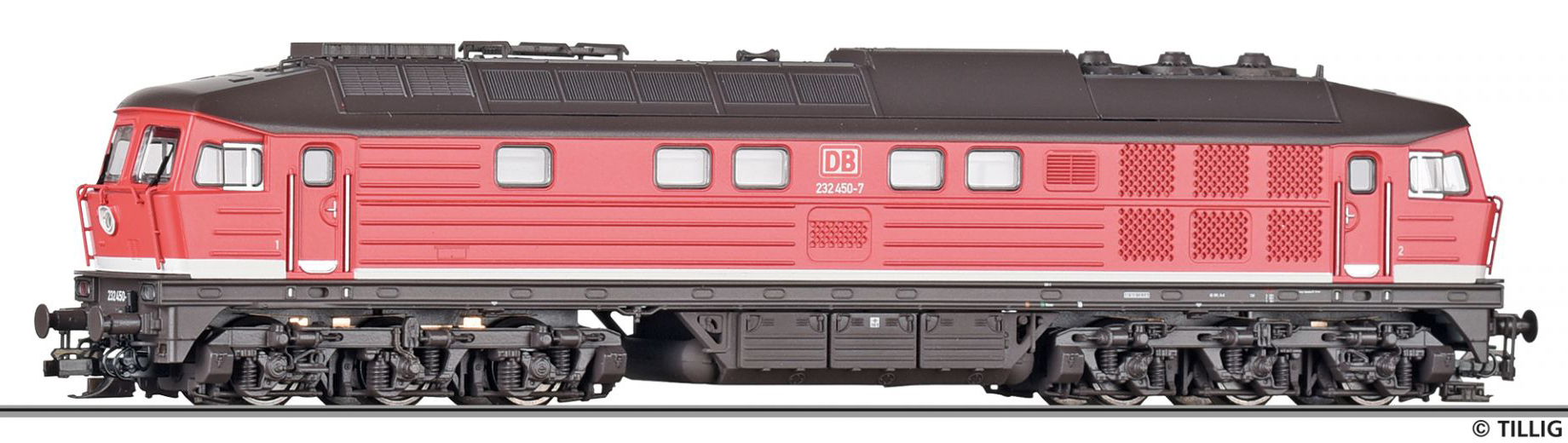 Kód   36282  [Lokomotivy] → [Motorové] → [BR 132] → 36282: červená s šedou střechou, černý pojezd, „Railion“