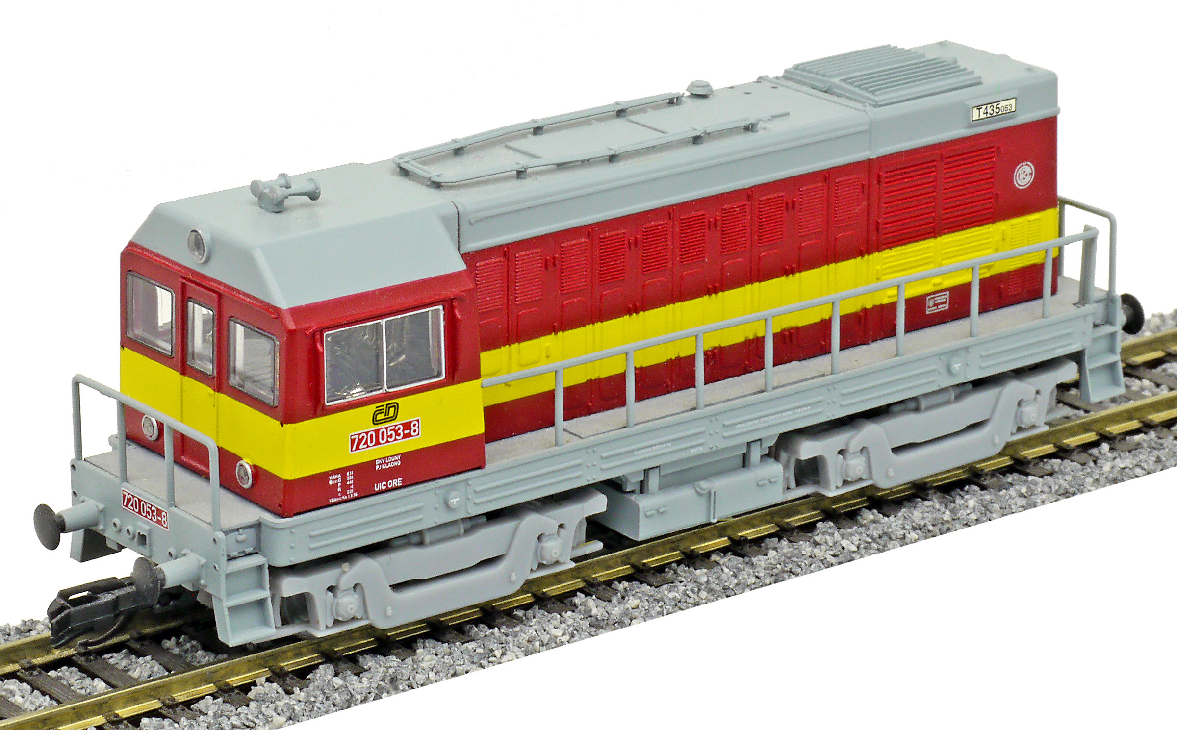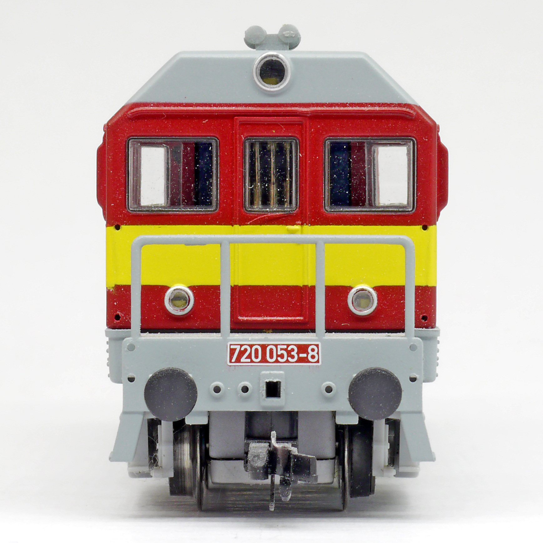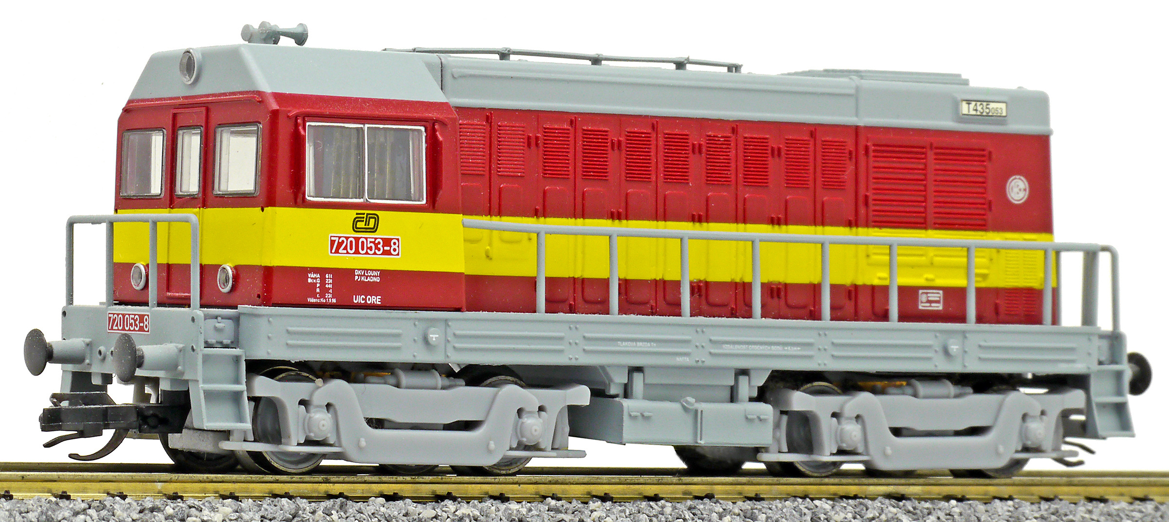 Popis   dieselová lokomotiva červená s výstražným žlutým pruhem