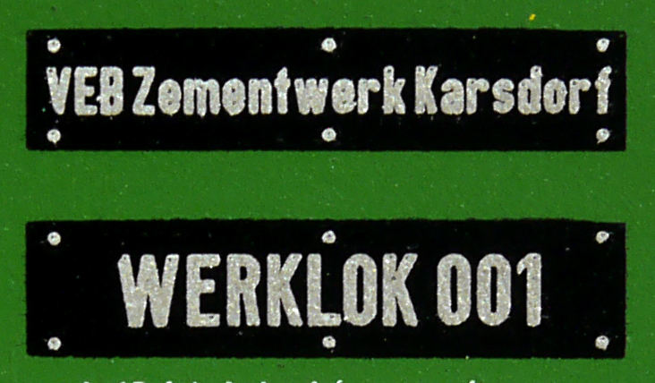 Popis   dieselová lokomotiva zelená s šedou střechou, černý rám a šedé podvozky „VEB Zementwerk Karsdorf“