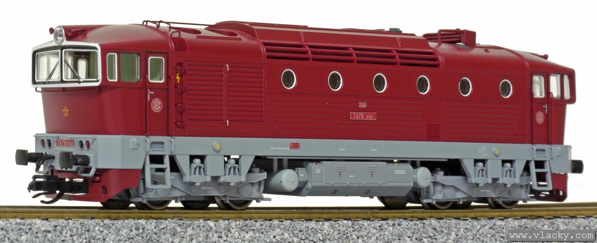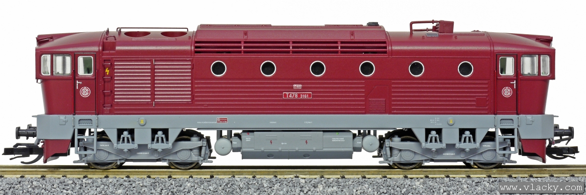 Kód   CD-753-006  [Lokomotivy] → [Motorové] → [T478.3 „Brejlovec”] → CD-753-006: dieselová lokomotiva vínově červená s krémovým pásem, šedé podvozky