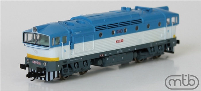 Kód   TT753-079  [Lokomotivy] → [Motorové] → [T478.3 „Brejlovec”] → TT753-079: dieselová lokomotiva světle modrá-tmavě modrá