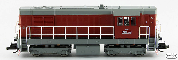 Kód   02767  [Lokomotivy] → [Motorové] → [T466.2/T448.0] → 02767: dieselová lokomotiva červená-šedá, bílé zábradlí