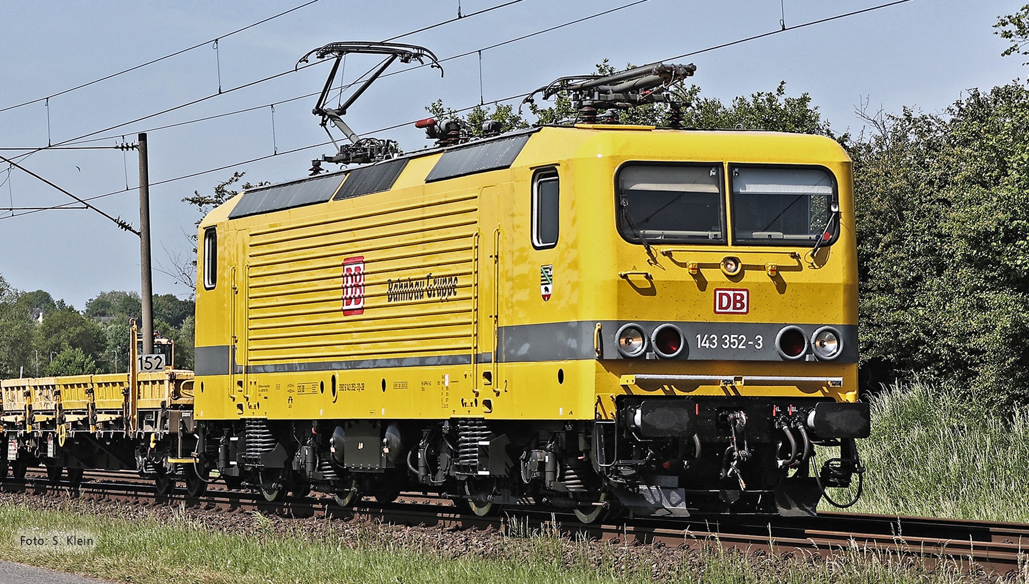 | elektrická lokomotiva žlutá s černým pojezdem „Bahnbau Gruppe“ |