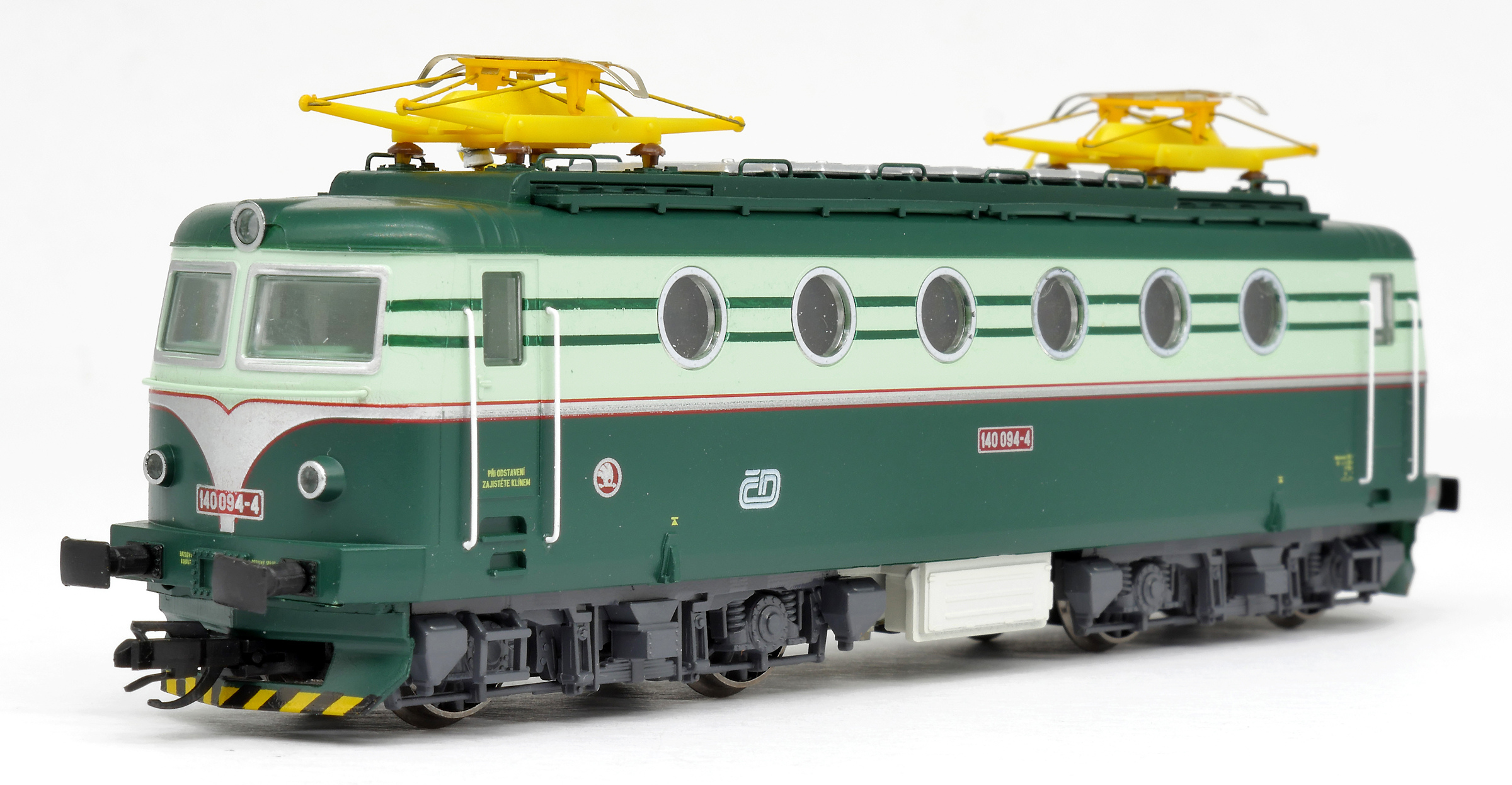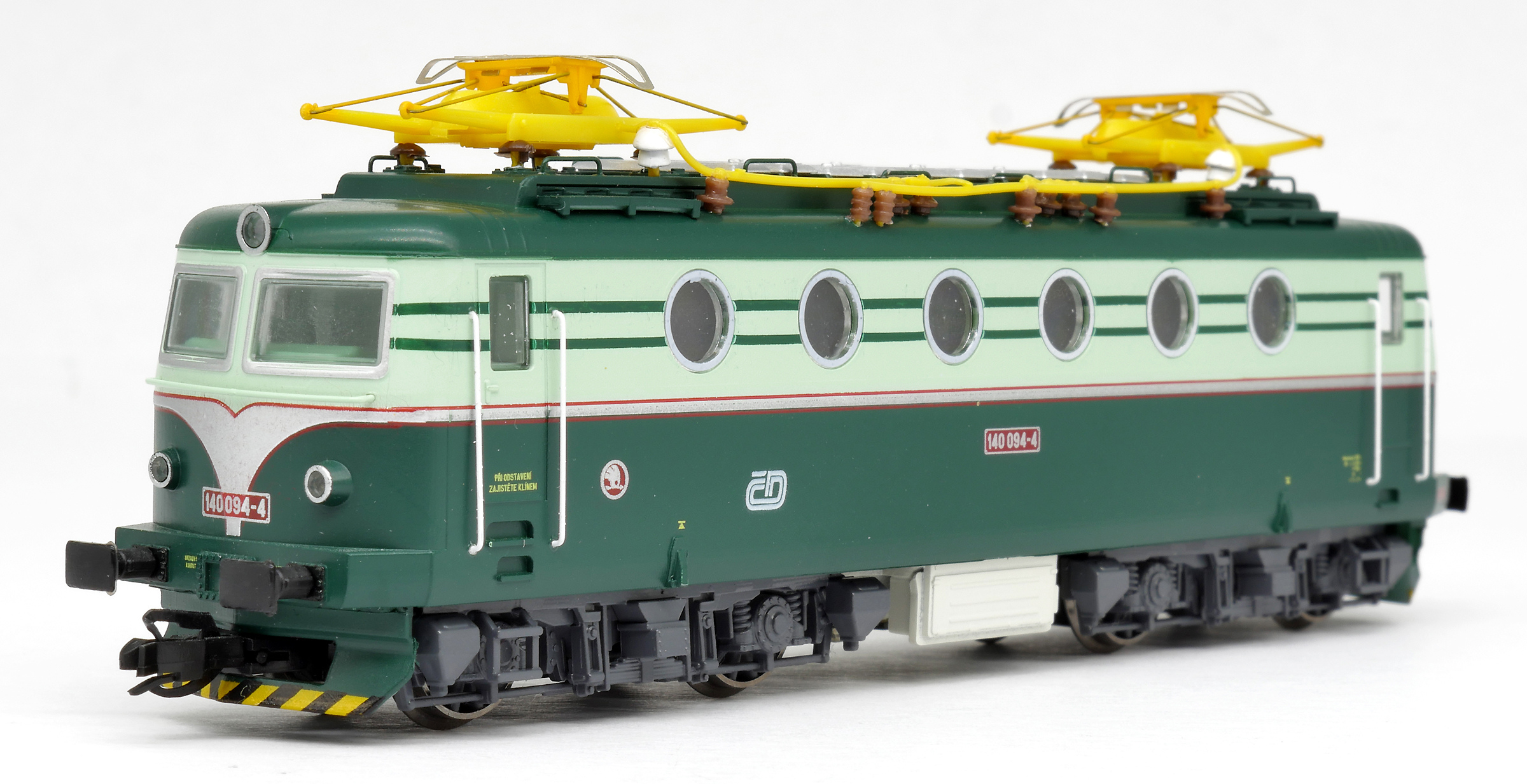 Kód   ZSR-140-065  [Lokomotivy] → [Elektrické] → [E499.0] → ZSR-140-065: elektrická lokomotiva v odstínech zelené, šedá střecha, žlutý výstražný pruh