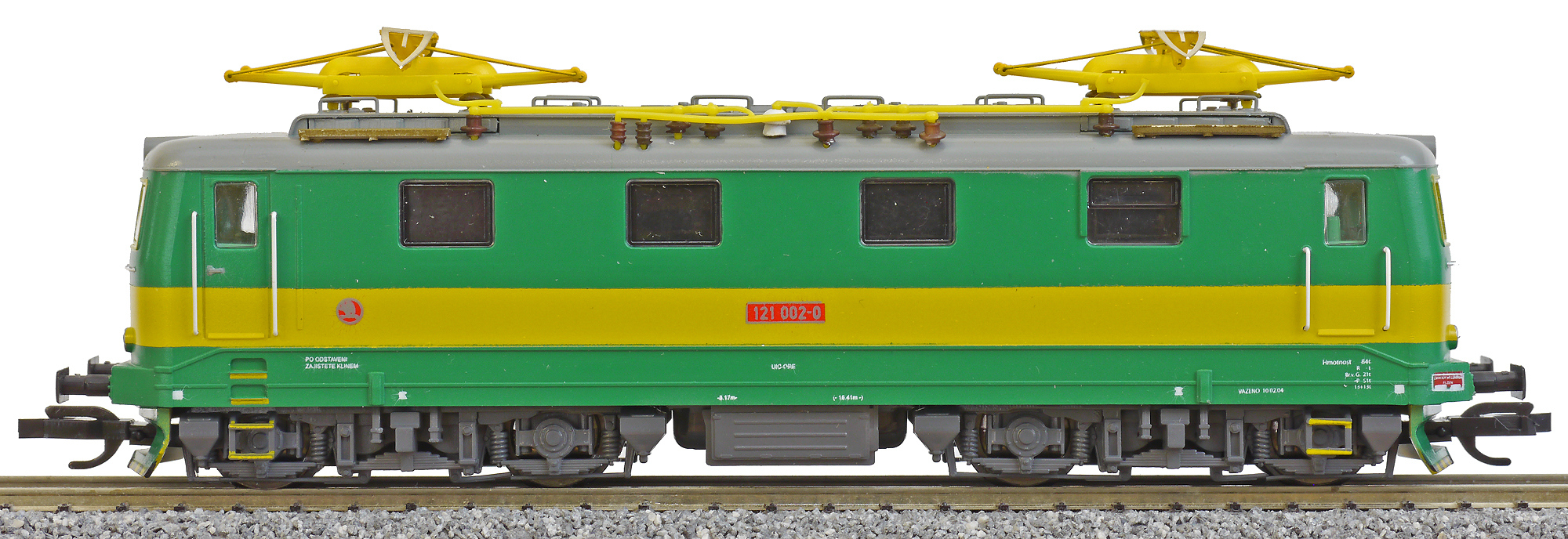 Kód   CD-141-006  [Lokomotivy] → [Elektrické] → [E499.1/E469.1] → CD-141-006: elektrická lokomotiva v odstínech zelené, šedá střecha, žlutý výstražný pruh