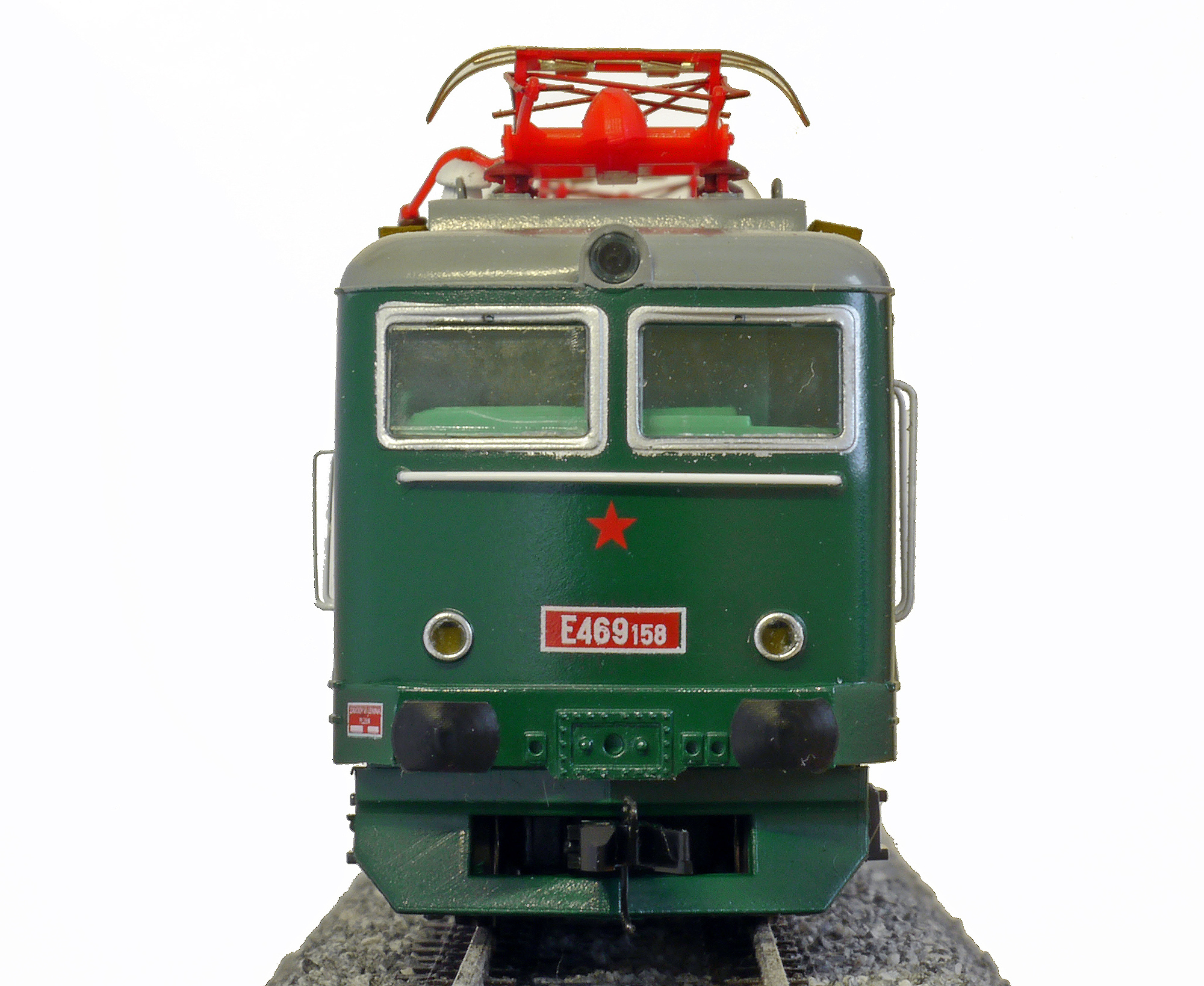 Kód   TT141-045  [Lokomotivy] → [Elektrické] → [E499.1/E469.1] → TT141-045: elektrická lokomotiva zelená-slonová kost, šedá střecha, žlutý výstražný pruh