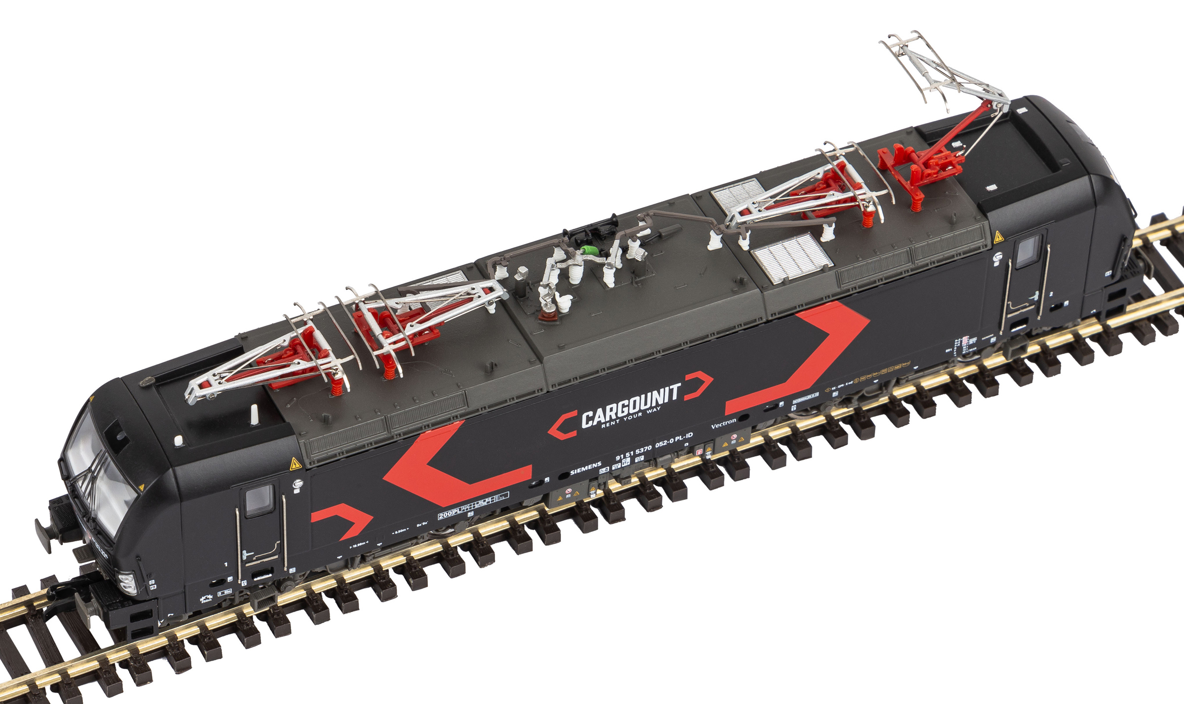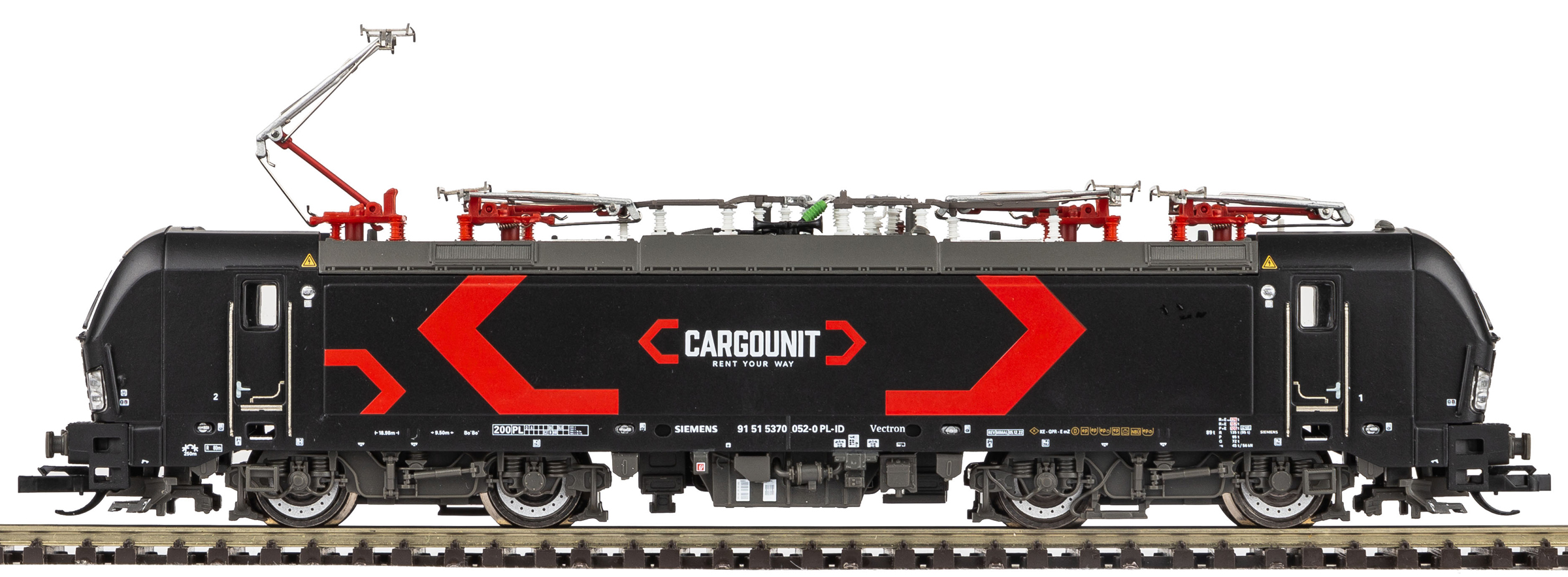 | elektrická lokomotiva černá s potiskem „CargoUnit“ |