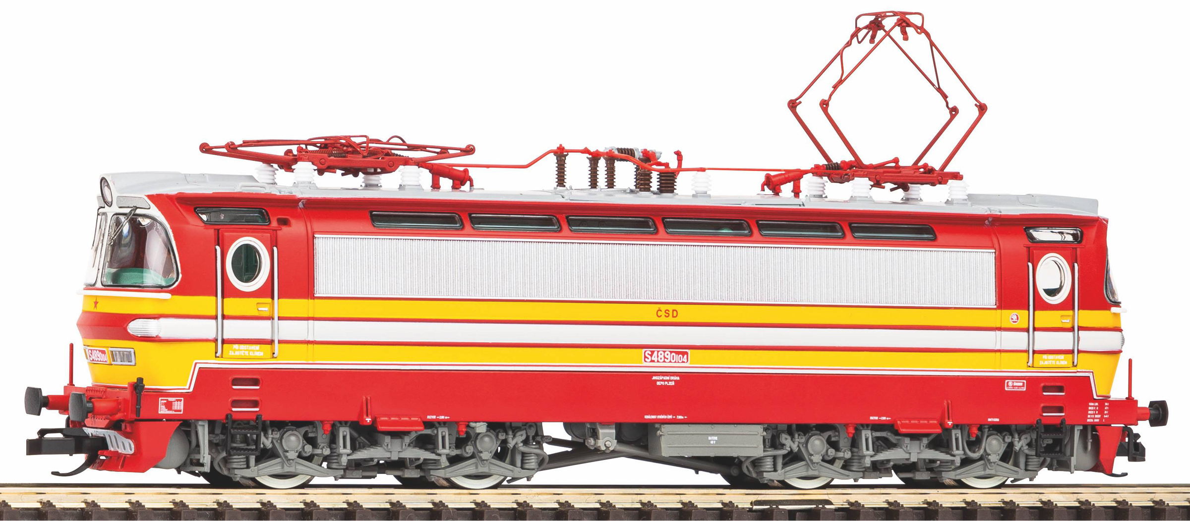 Popis   elektrická lokomotiva v barevné kombinaci červená-žlutá, šedá střecha