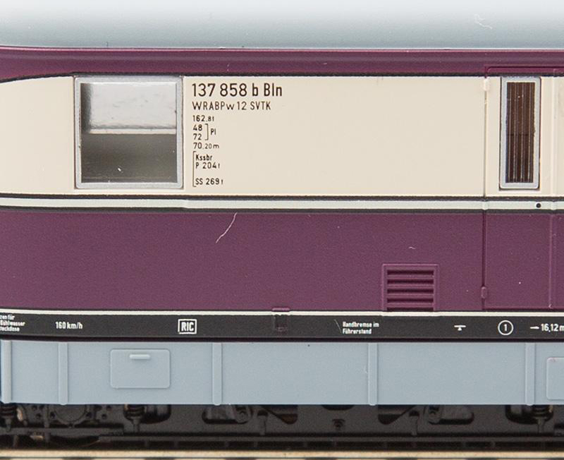 měřítko 1:120 - rozchod kolejí 12 mm zvukový generátor instalován lokomotivní digitální dekodér (DCC) 585 mm - celková délka modelu přes nárazníky 3x4 - celkový počet náprav nebo rozložení náprav