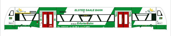 Popis   motorový vůz v barevném schematu „Elster-Saale-Bahn“