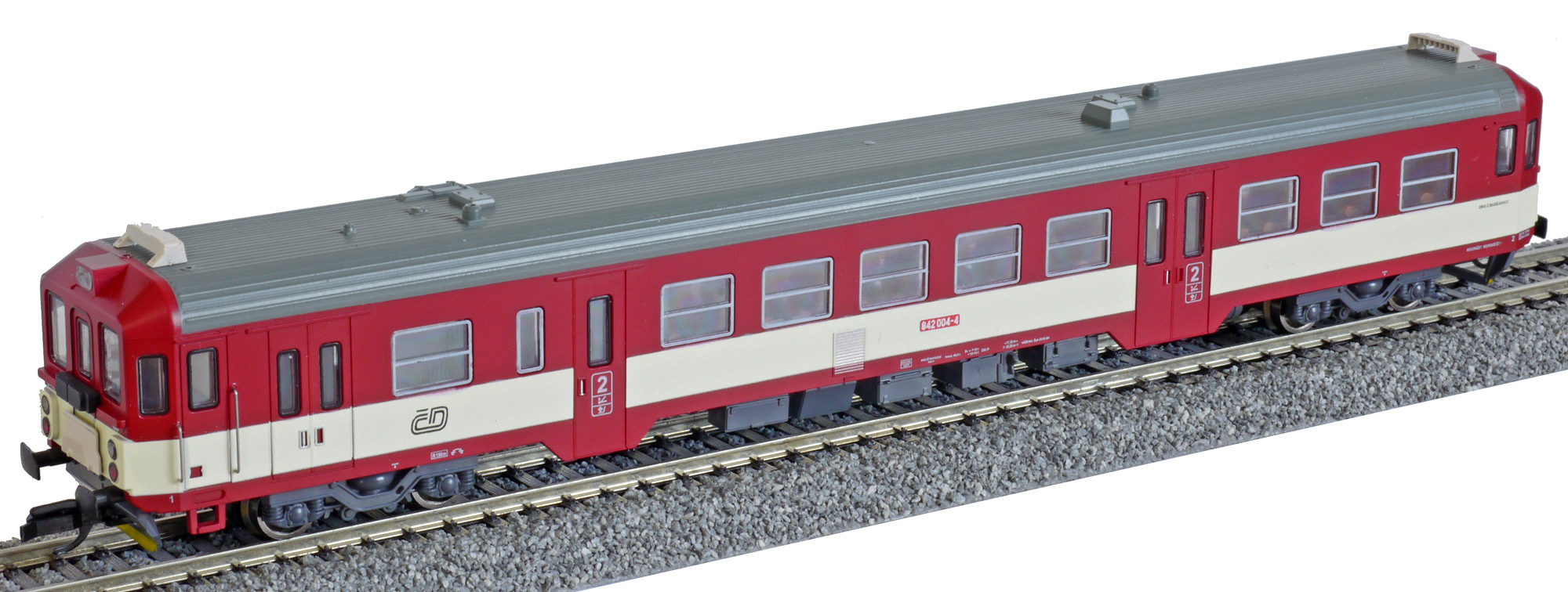 měřítko 1:120 - rozchod kolejí 12 mm osvětlení - 3 reflektory vpředu, 2 světla vzadu, přepínatelné podle směru jízdy 2 hnané nápravy 0 bandážovaných náprav vnitřní interiér vozu instalováno osvětlení interiéru kinematika krátkého spřáhla (KKK) podle normy NEM 358 digitální rozhraní podle NEM 658 s konektorem PluX16 210 mm - celková délka modelu přes nárazníky 4 - celkový počet náprav nebo rozložení náprav 220 g - hmotnost brutto - model včetně prodejního obalu 140 g - hmotnost netto - pouze model