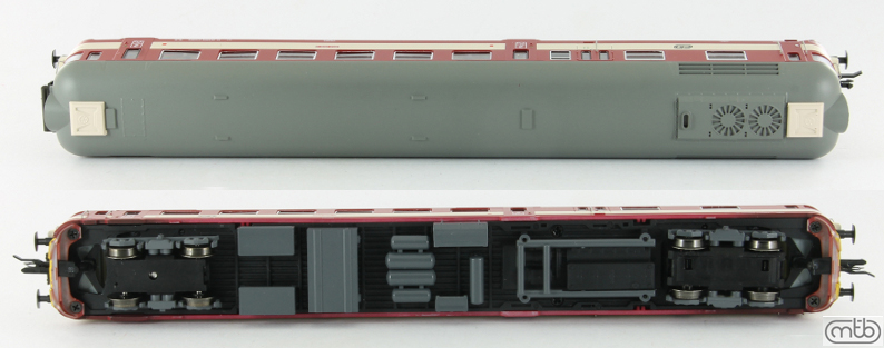 Popis   motorový vůz červený-slonová kost s šedou střechou