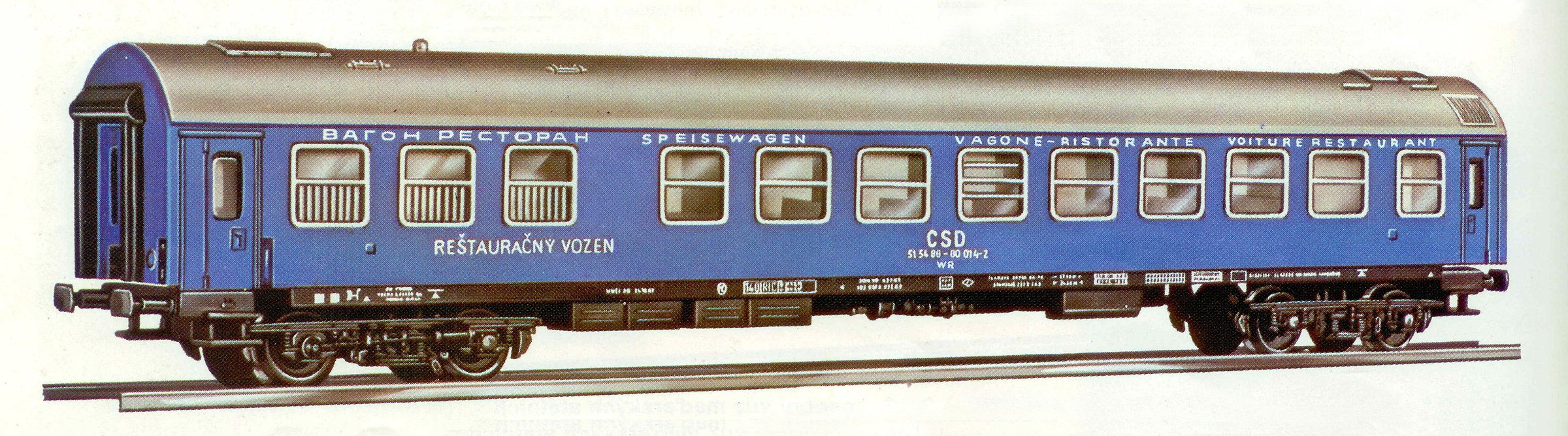 Kód   545/81  [Osobní vozy] → [Rychlíkové] → [typ Y] → 545/81: jídelní vůz červený s šedou střechou „MITROPA“