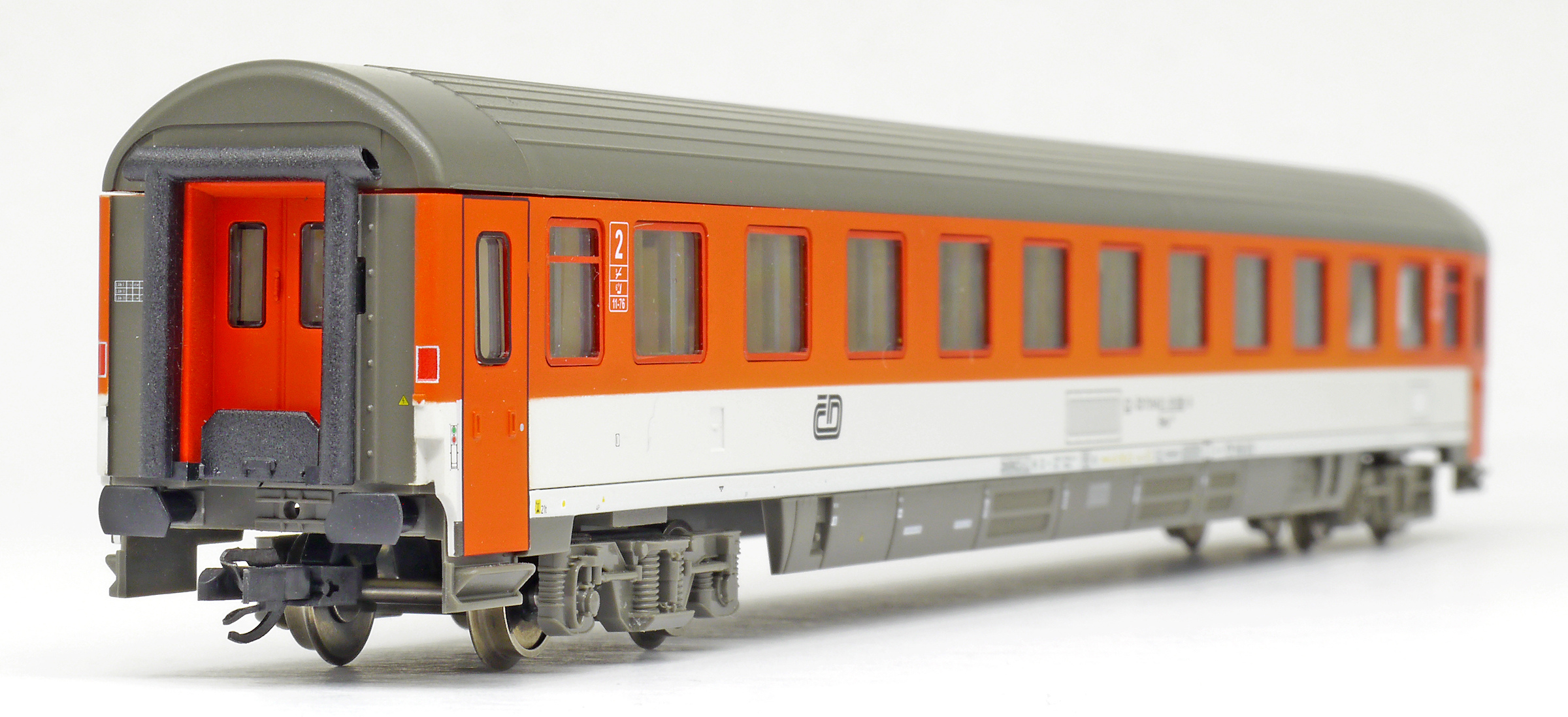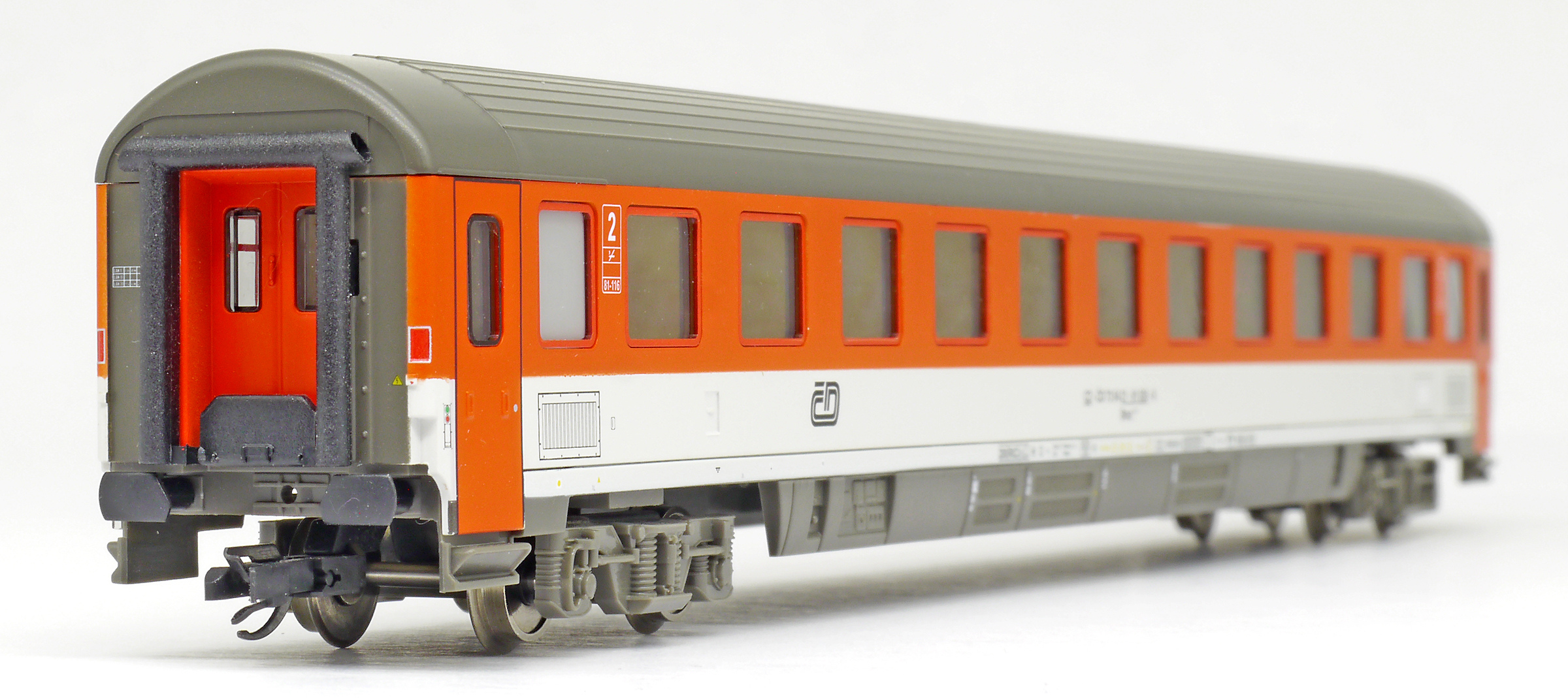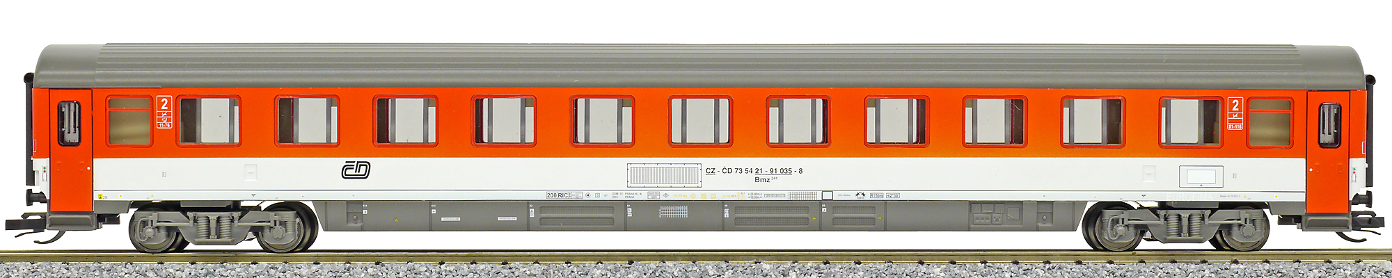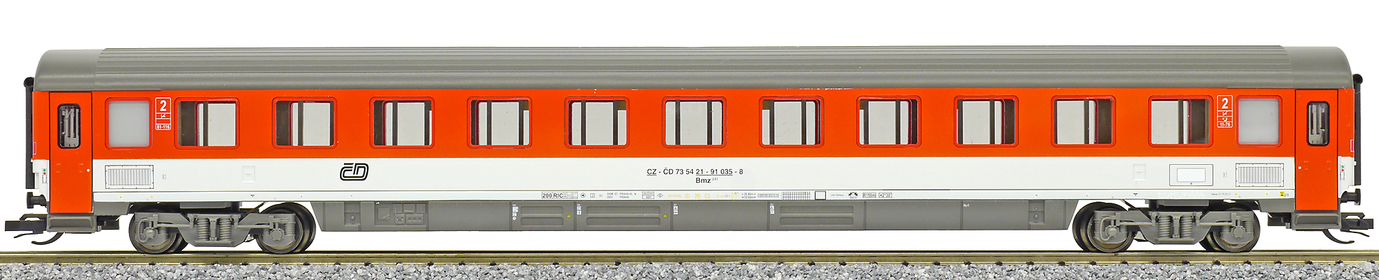 | rychlíkový vůz červený-bílý s šedou střechou 2. tř. |