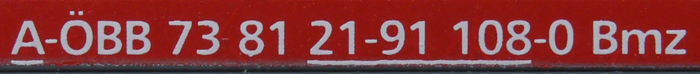| • 73 81 21-91 108-0 | → | A - Rakousko |
