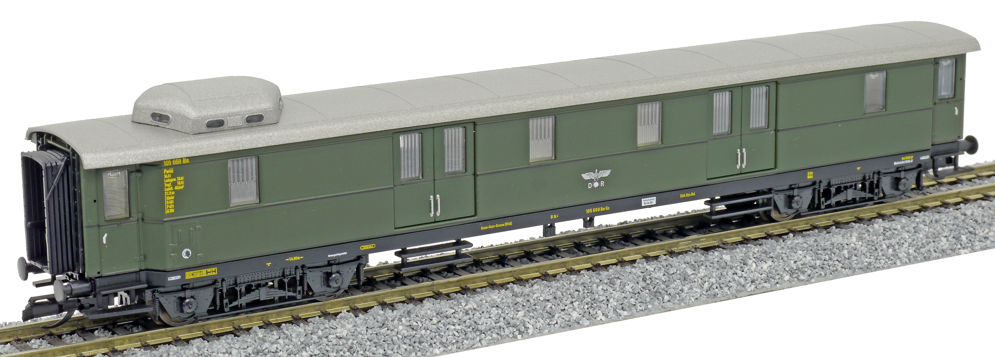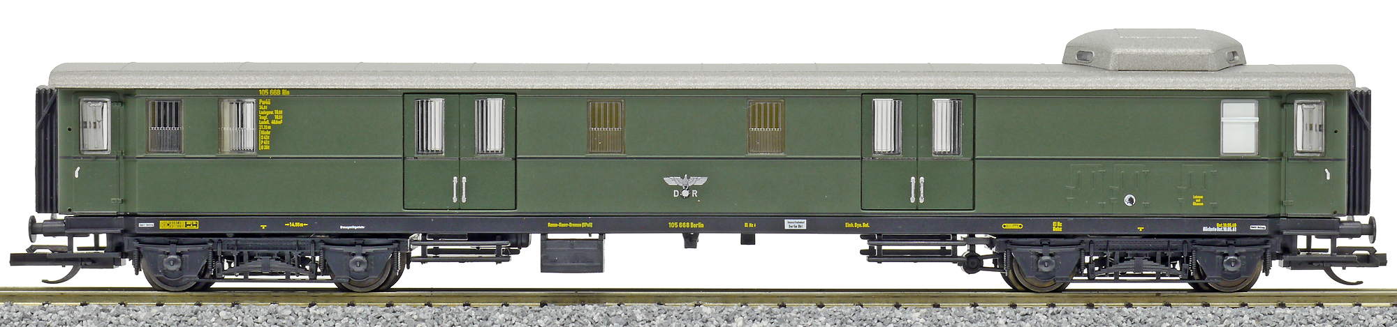 Kód   501769  [Osobní vozy] → [Spěšné a osobní] → [4-osé spěšné] → 501769: zavazadlový vůz zelený s tmavě šedou střechou