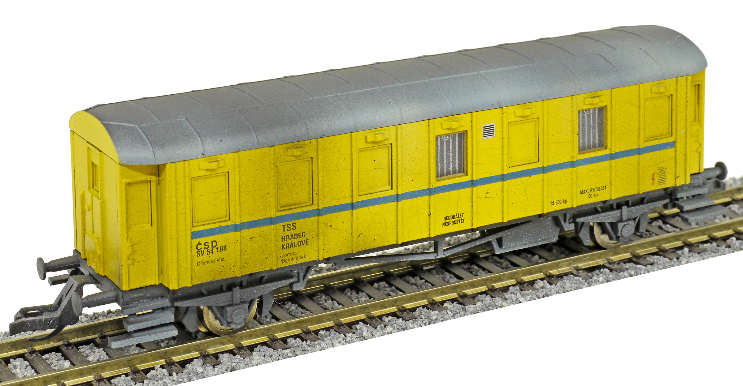 měřítko 1:120 - rozchod kolejí 12 mm nenormované uchycení spřáhla 116 mm - celková délka modelu přes nárazníky 2 - celkový počet náprav nebo rozložení náprav 51 g - hmotnost brutto - model včetně prodejního obalu 28 g - hmotnost netto - pouze model