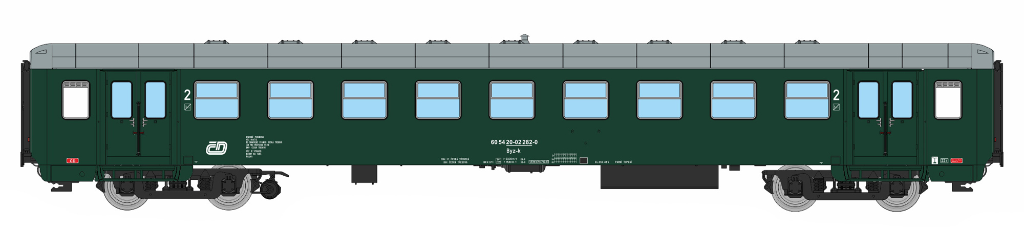 | • 60 54 20-02 282-0 | → | vůz druhé třídy 10 oddílů |