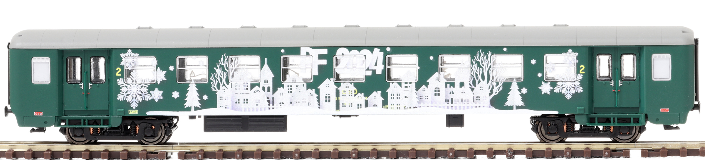 | osobní vůz zelený s šedou střechou 2. tř., Plzeň |