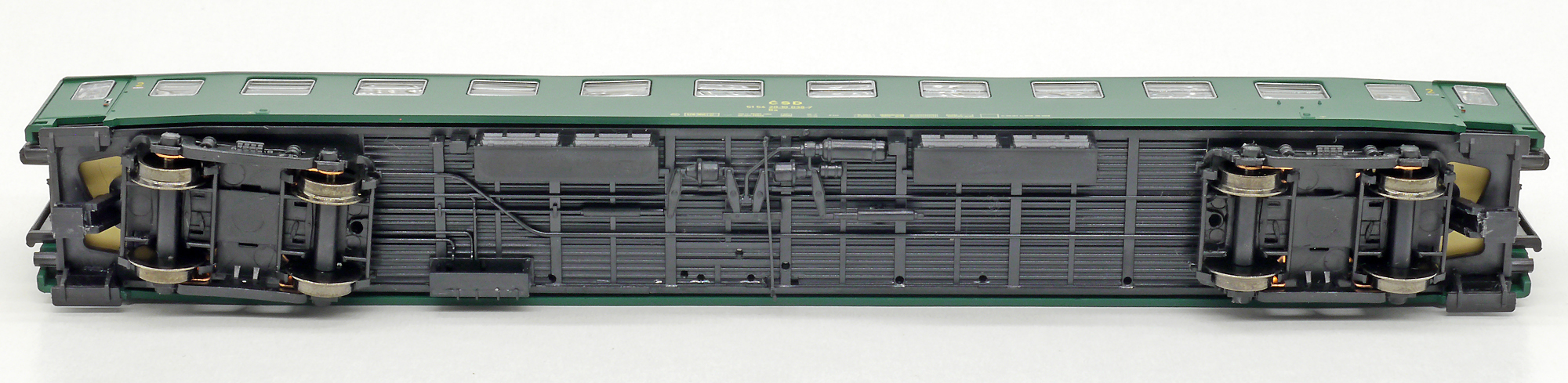 měřítko 1:120 - rozchod kolejí 12 mm vnitřní interiér vozu je možná instalace osvětlení interiéru kinematika krátkého spřáhla (KKK) podle normy NEM 358 196 mm - celková délka modelu přes nárazníky 4 - celkový počet náprav nebo rozložení náprav 150 g - hmotnost brutto - model včetně prodejního obalu 55 g - hmotnost netto - pouze model