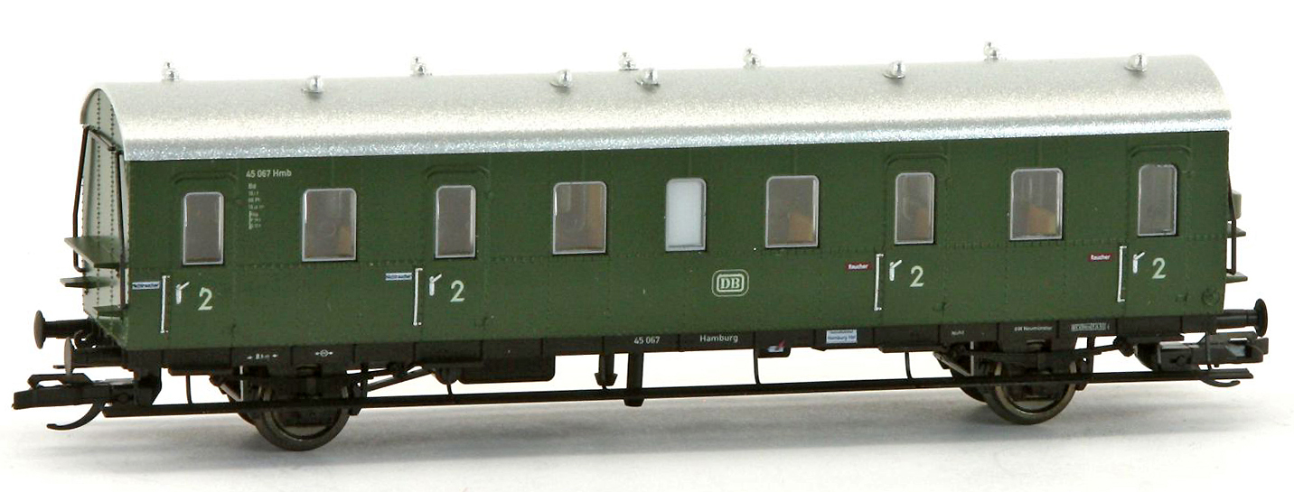 | oddílový osobní vůz zelený se stříbrnou střechou 2. tř. |
