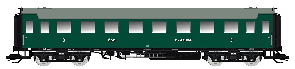 | oddílový osobní vůz zelený s šedou střechou 3. tř. |