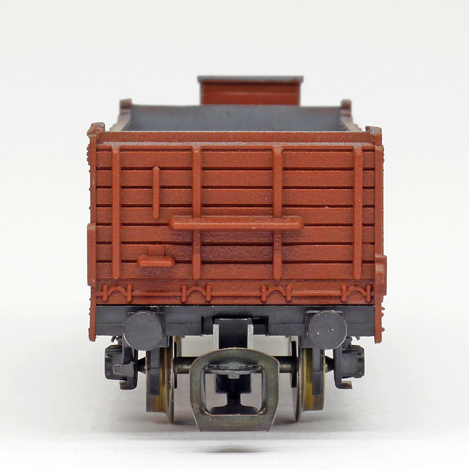 | otevřený nákladní vůz červenohnědý s brzdařskou budkou |