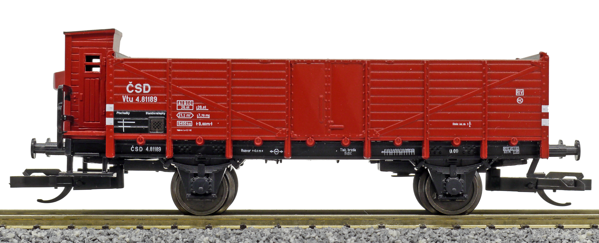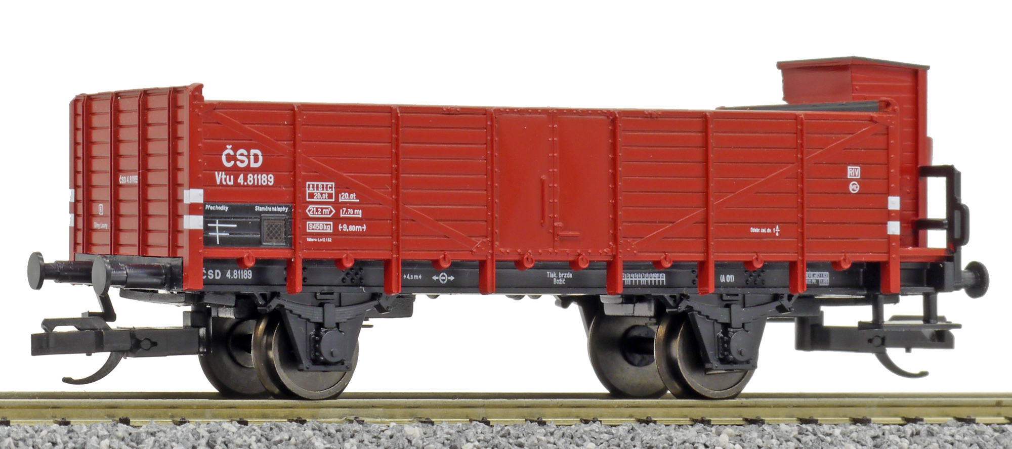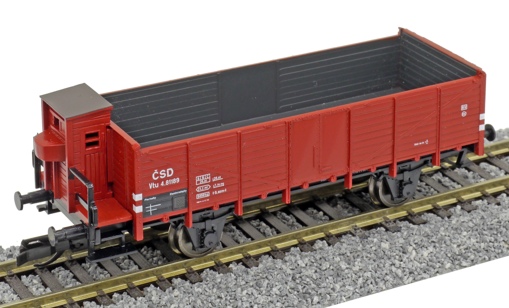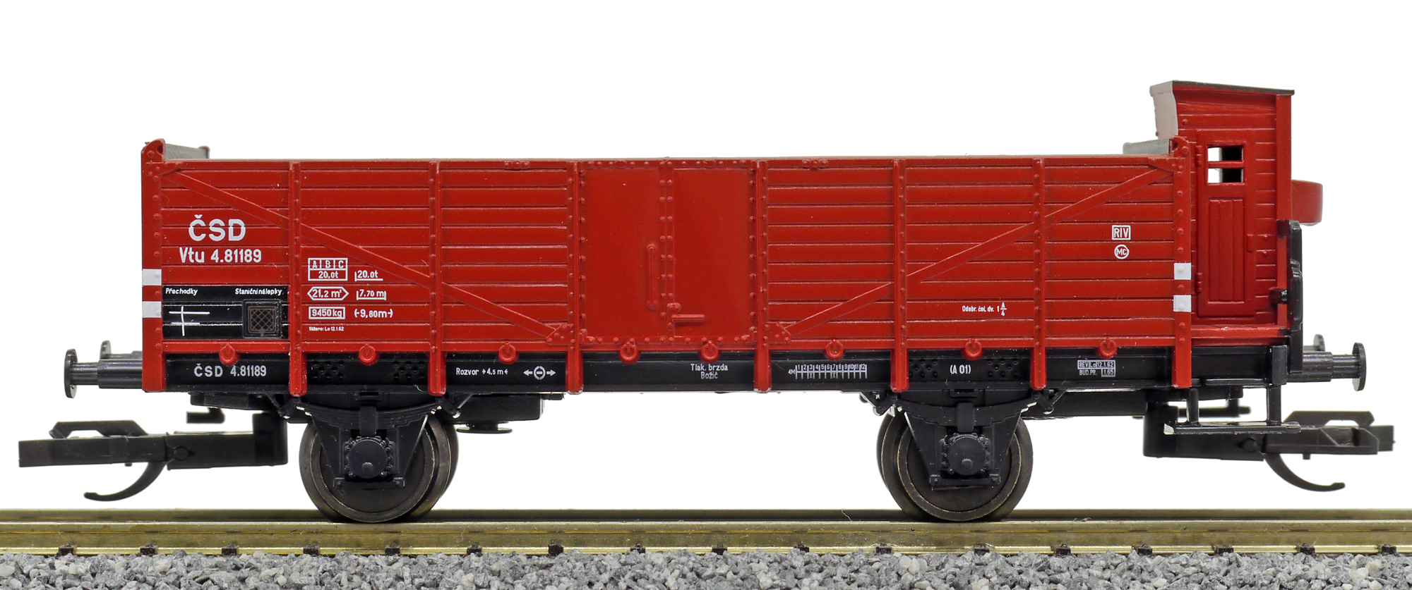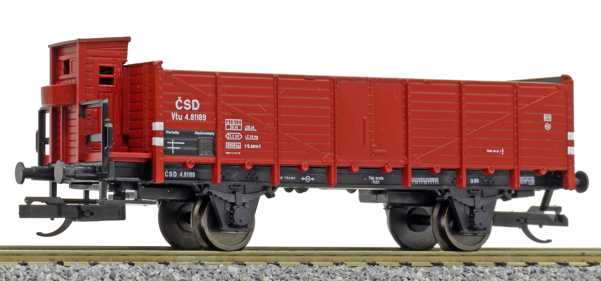 | otevřený nákladní vůz červenohnědý s brzdařskou budkou |