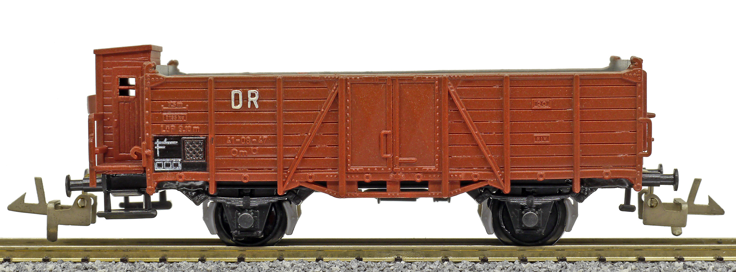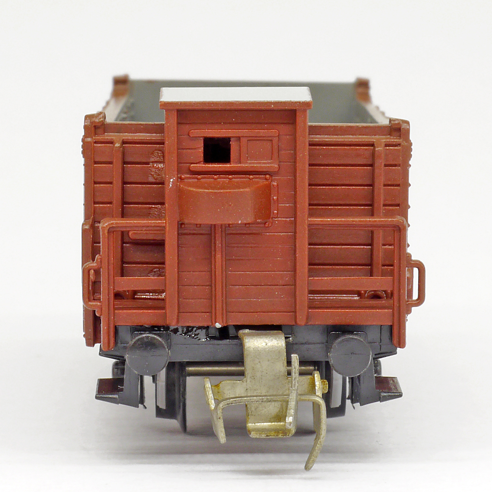 otevřený nákladní vůz červenohnědý s brzdařskou budkou