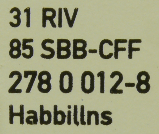 | • 31 85 278 0 012-8 | → | CH - Švýcarsko |