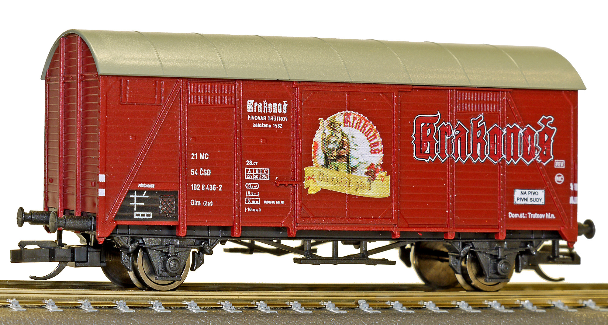 ![[Nákladní vozy] → [Kryté] → [2-osé Ztr (Glm)] → M2006: krytý nákladní vůz modrý se stříbřitou střechou „Krakonoš - Silné pivo 14“ [Nákladní vozy] → [Kryté] → [2-osé Ztr (Glm)] → M2006: krytý nákladní vůz modrý se stříbřitou střechou „Krakonoš - Silné pivo 14“](./foto/03.02.03/00011491_t.jpg) |
