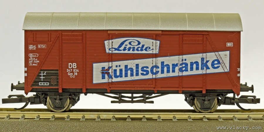 Kód   S3001  [Nákladní vozy] → [Kryté] → [2-osé Ztr (Glm)] → S3001: krytý nákladní vůz červenohnědý s šedou střechou Gm 39 „Linde”