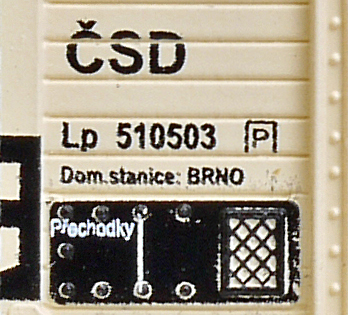 | krytý nákladní vůz krémový s šedou střechou a brzdařskou budkou „Moravia“ |
