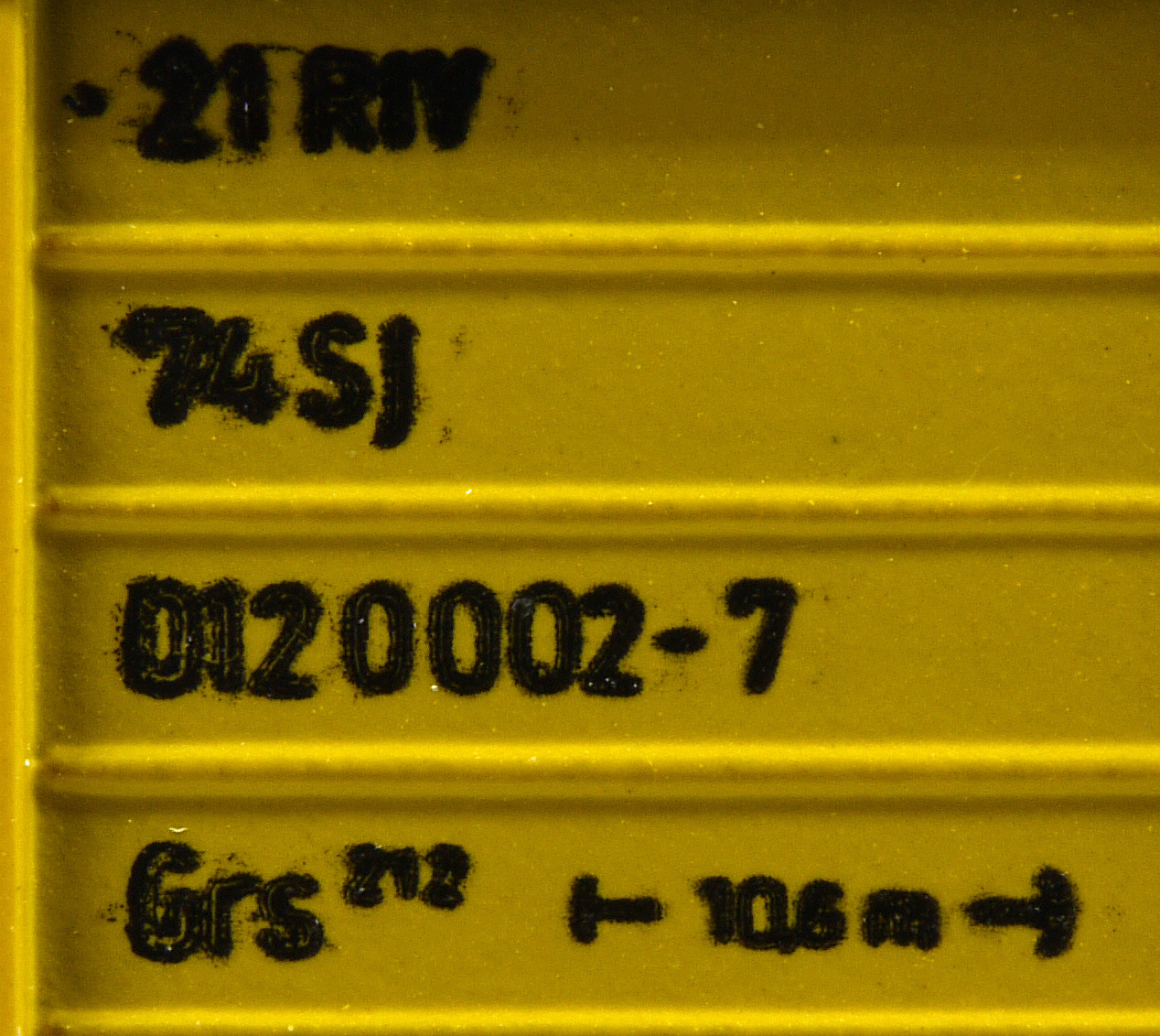 | • 21 74 012 0002-7 | → | nákladní, nezávislé nápravy, pevný rozchod, ve vlastnictví železniční správy, RIV, PPV |