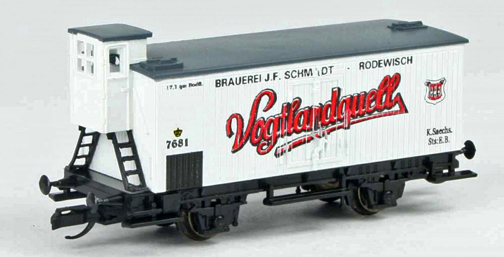 bílý chladící vůz s tmavě šedou střechou „Vogtlandquell“