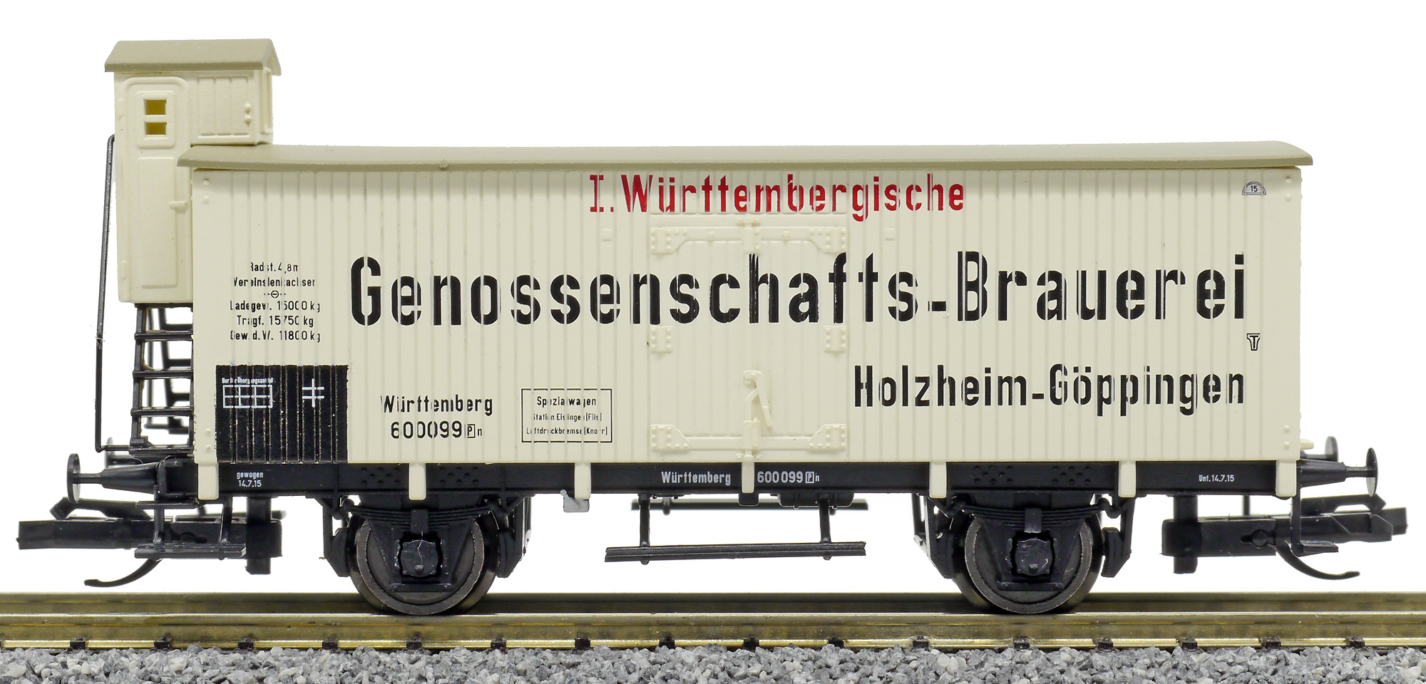 | chladicí vůz bílý s šedou střechou „I. Württemb. Genossenschafts-Brauerei“ |