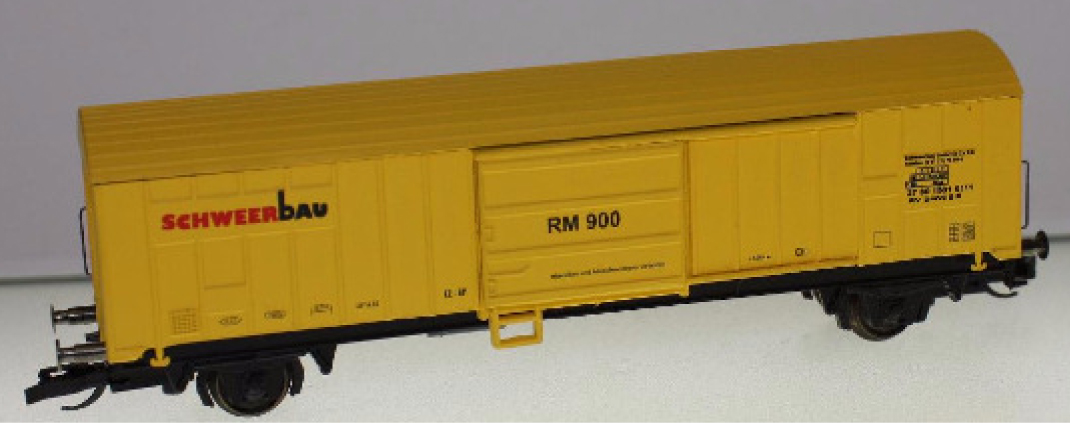 | • RM 900 | - | plošinový vůz podvozkový běžné stavby se sklopnými čelními stěnami a klanicemi |