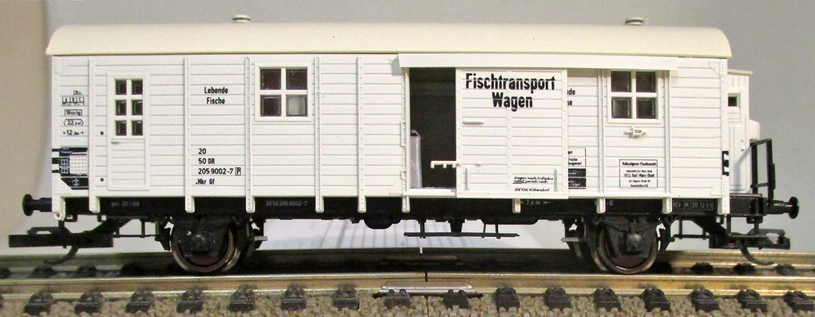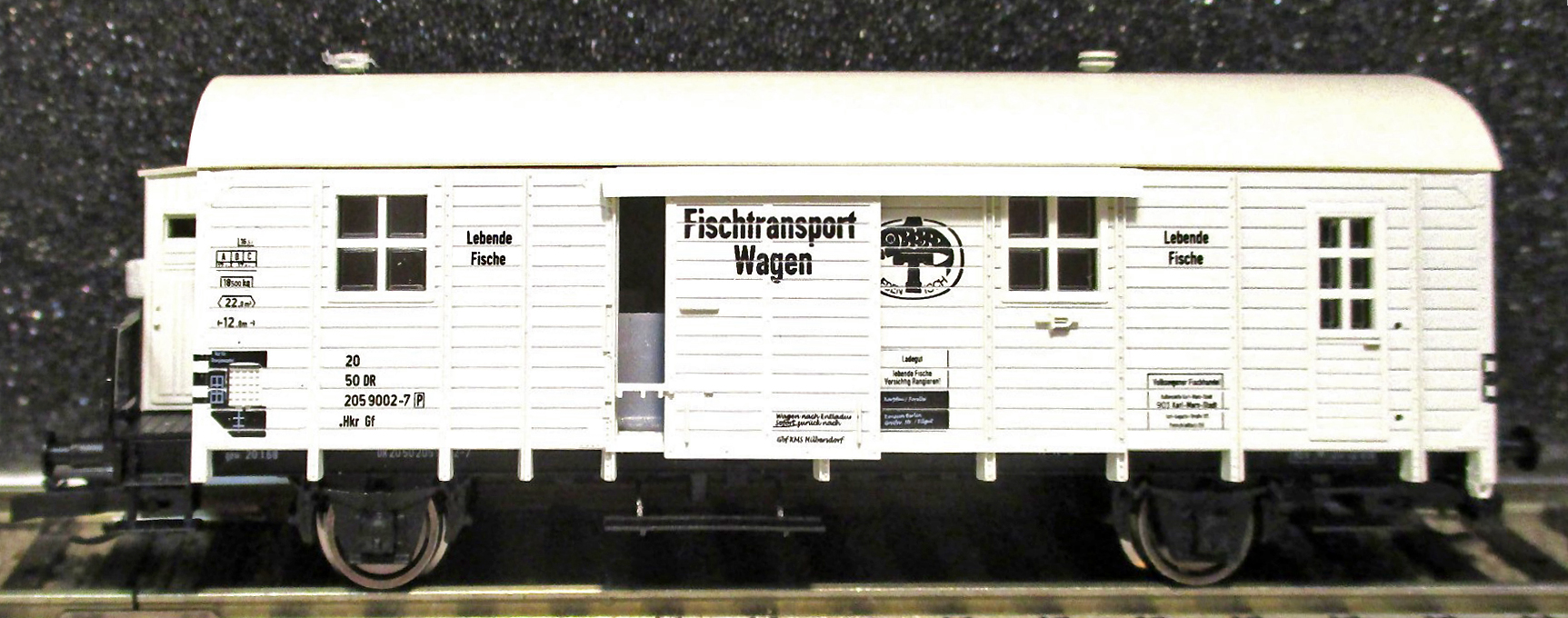 | chladící nákladní vůz bílý s béžovou střechou na přepravu ryb „Kraftwerksfische-VIII“ |