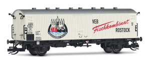 | chladící krytý nákladní vůz krémový se stříbřitou střechou „VEB Fischkombinat Rostock“ |