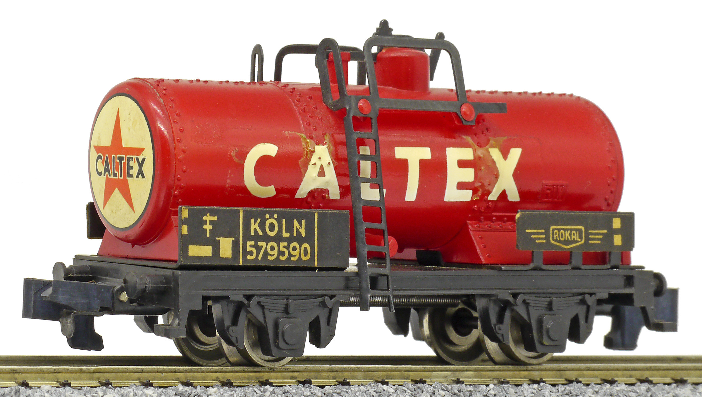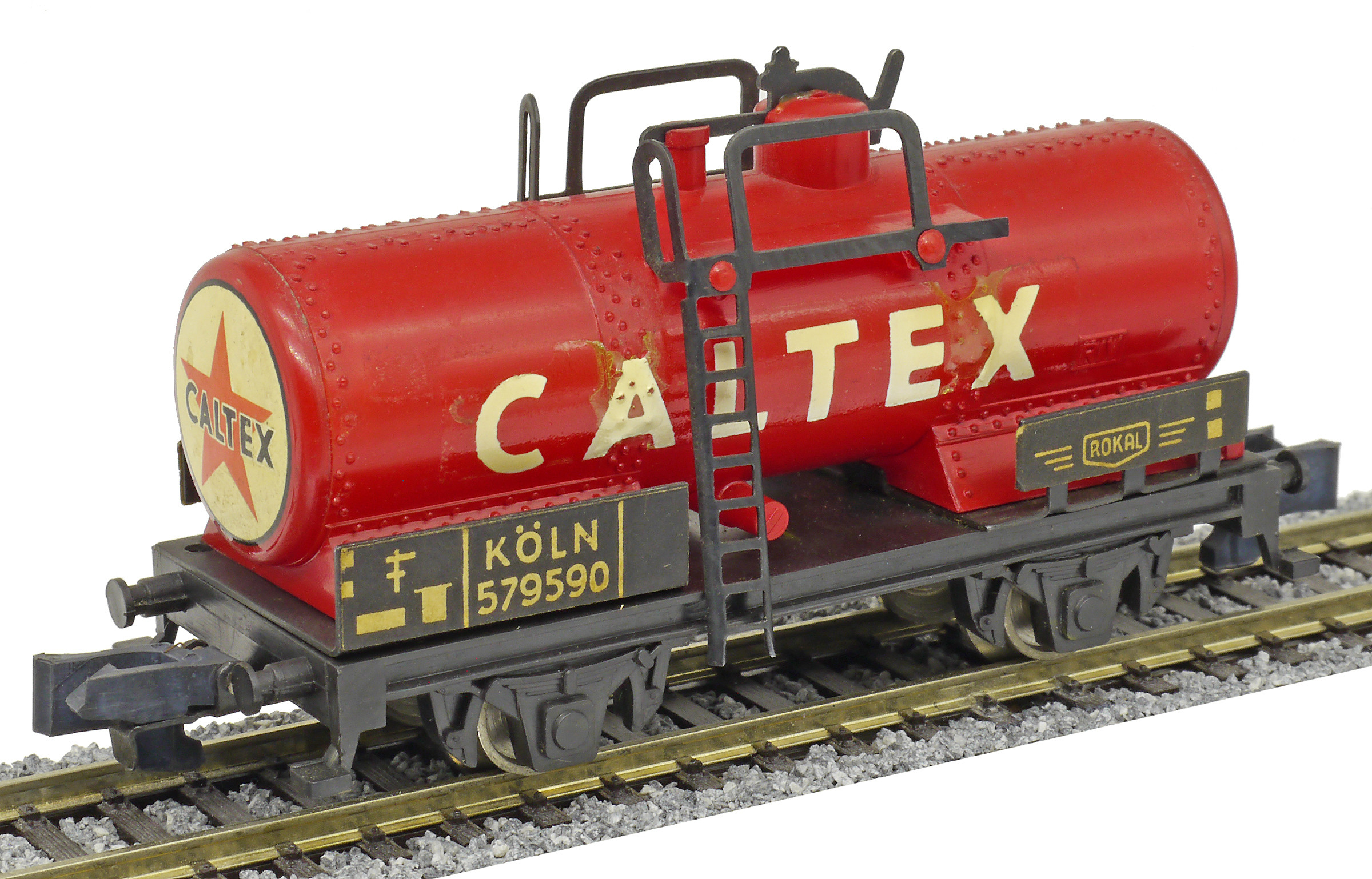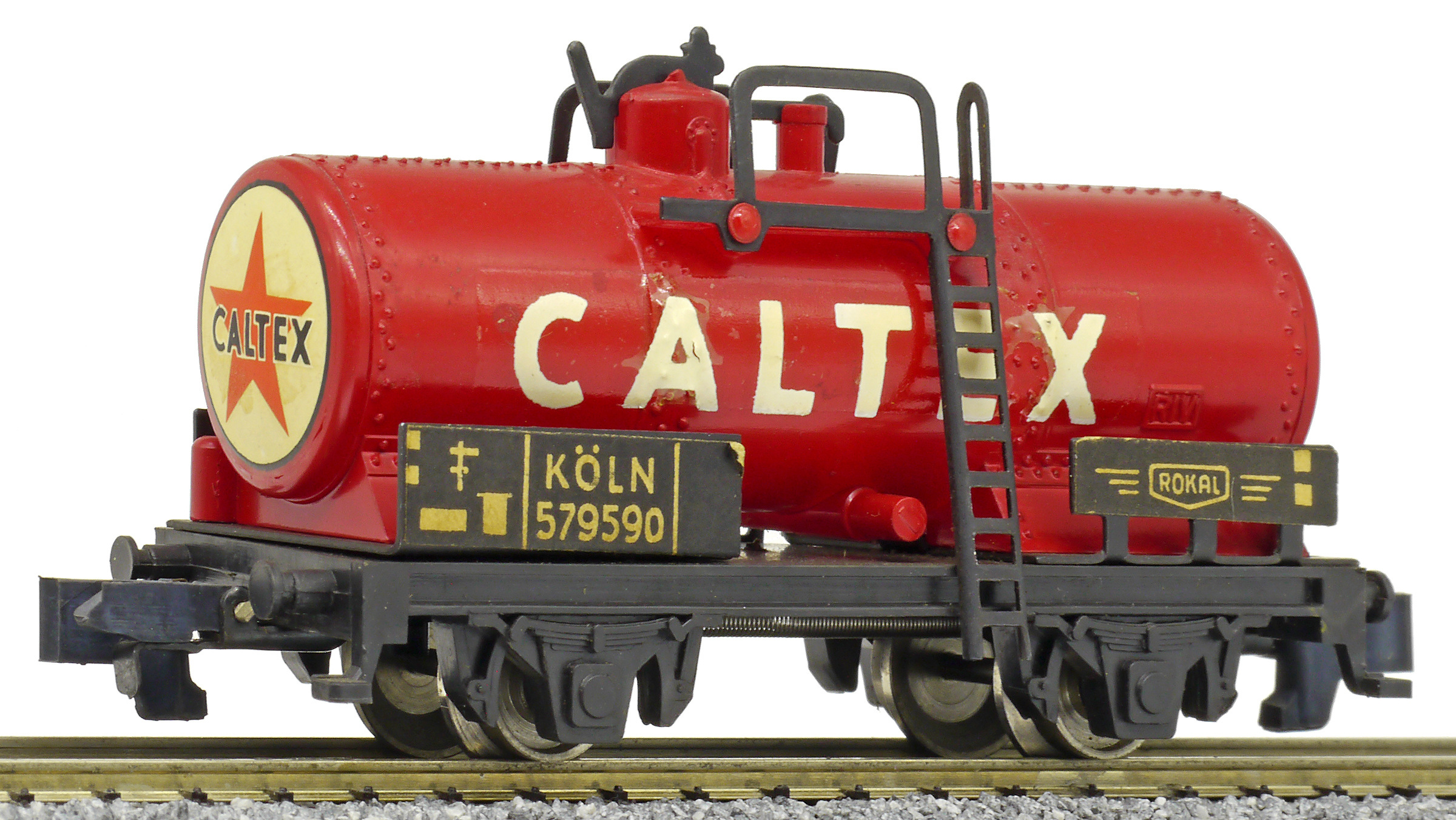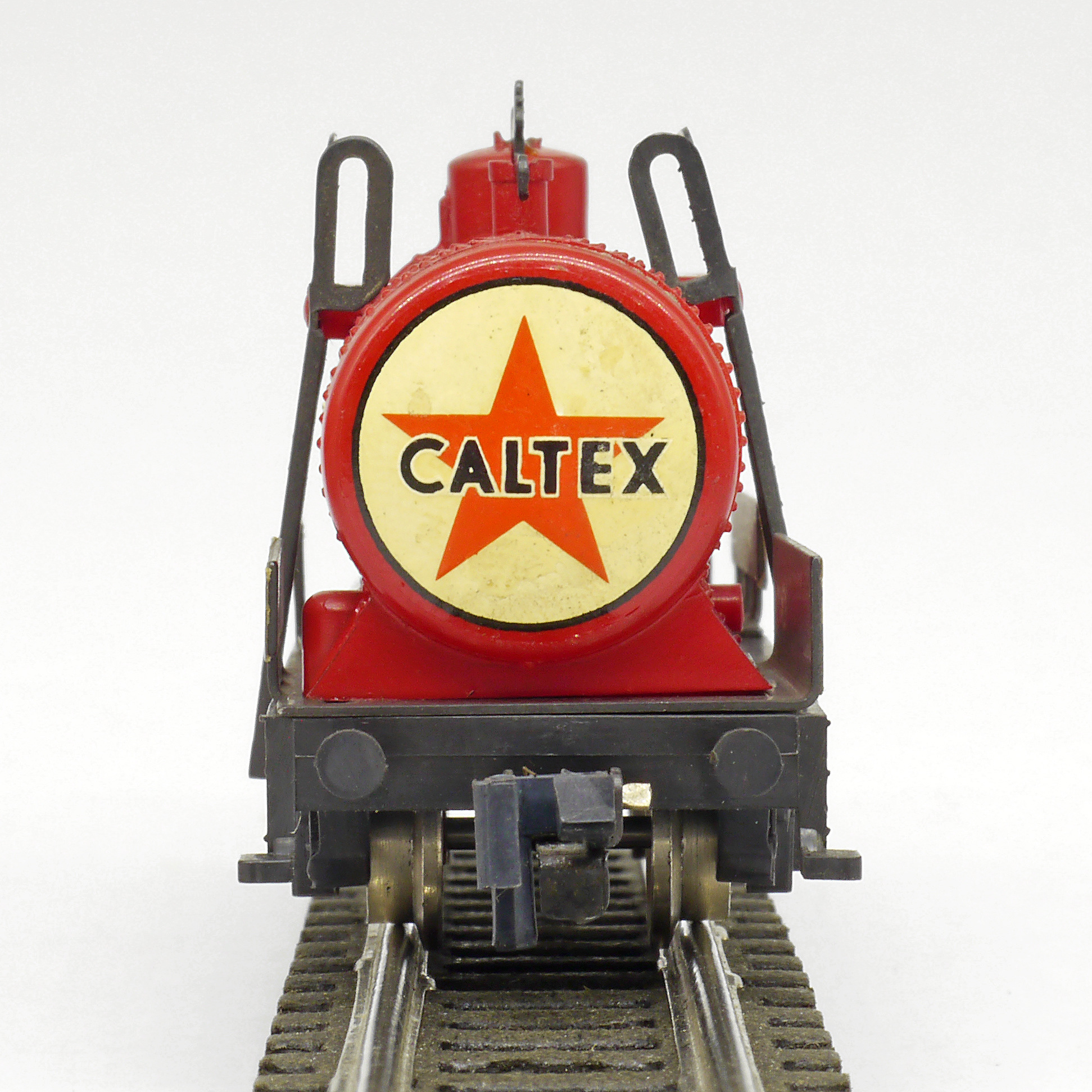 kotlový vůz červený s nápisem „CALTEX“