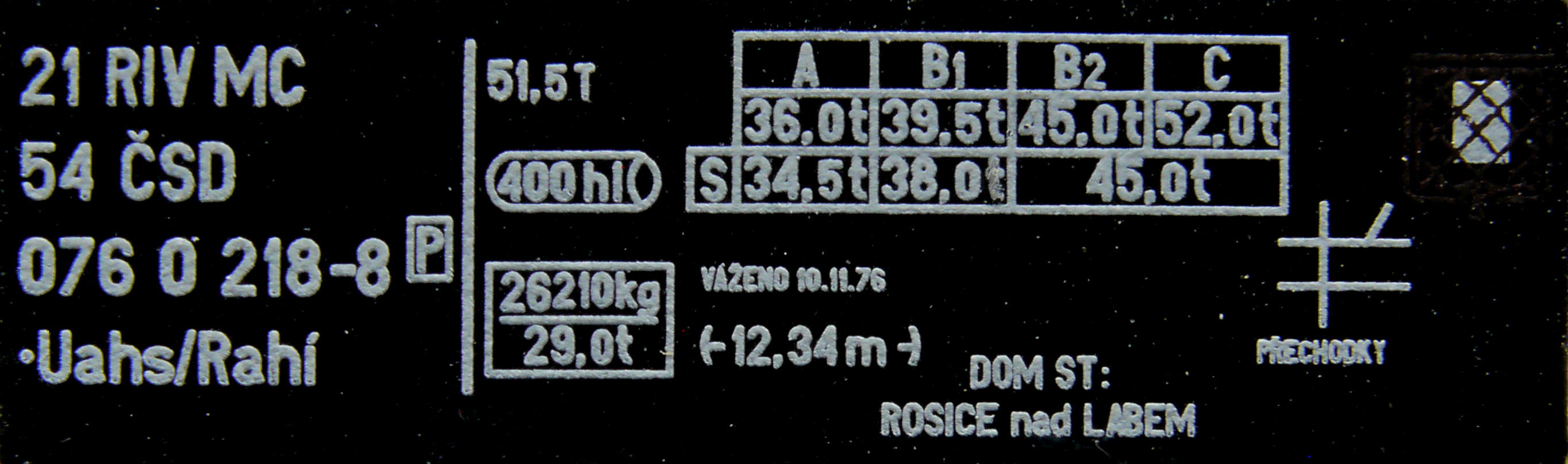 | • 21 54 076 0 218-8 | → | ČSD - Československé státní dráhy |