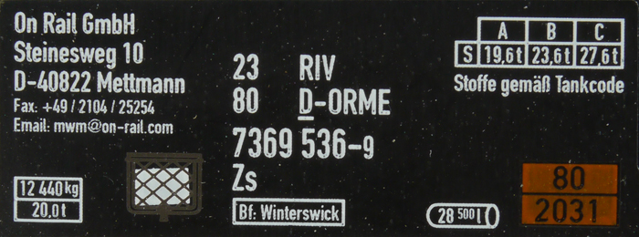 | • 23 80 7369 536-9 | → | nákladní, nezávislé nápravy, pevný rozchod, soukromý vůz, RIV, PPV |