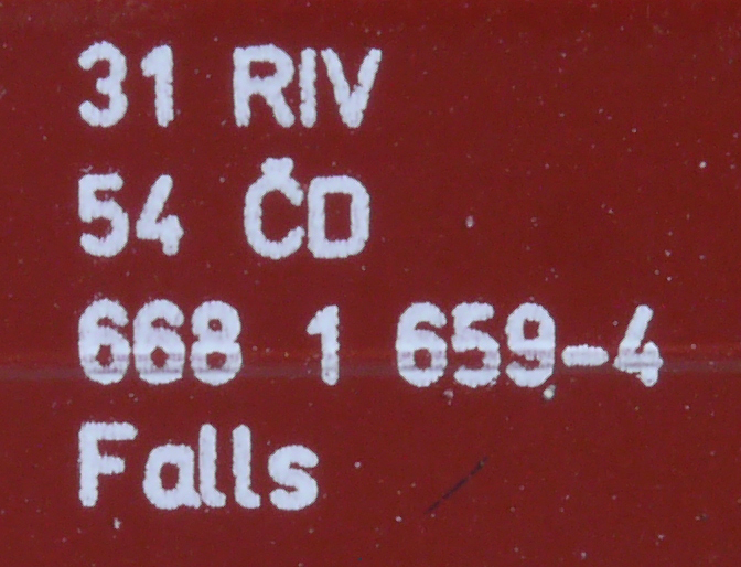 | • 31 54 668 1 659-4 | → | nákladní, s podvozky, pevný rozchod, ve vlastnictví železniční správy, RIV, PPV |