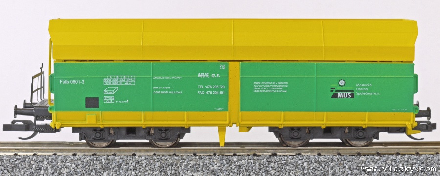 Popis   nákladní samovýsypný vůz žlutý-zelený „Mostecká uhelná společnost a.s.“